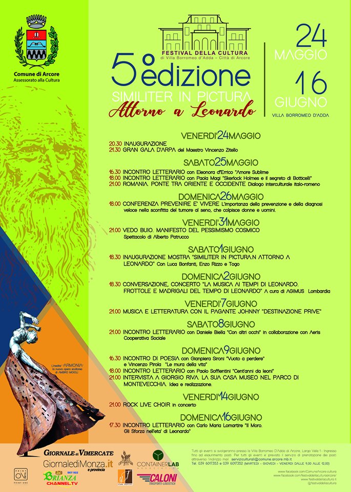 Ad un anno esatto dall’inaugurazione della riapertura della splendida Villa Borromeo d’Adda, l’Amministrazione Comunale di Arcore propone la nuova edizione della manifestazione culturale che ha annoverato tra i suoi ospiti personaggi di particolare rilievo come il prof. Philippe Daverio e Pupi Avati e molti altri.