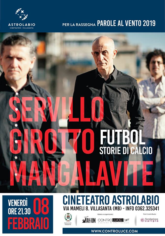 Domani venerdì 8 febbraio Peppe Servillo (voce), Javier Girotto (sax, clarinetto basso e flauti andini) e Natalio Mangalavite (pianoforte) saranno sul palco del Cineteatro Astrolabio di Villasanta (inizio live ore 21.30; ingresso 15 euro) per inventare insieme storie e nuovi percorsi musicali. I tre artisti presenteranno il progetto “Fùtbol”, ispirato alla raccolta “Fùtbol – Storie di calcio” del grande scrittore argentino Osvaldo Soriano. Sono tutte canzoni che hanno come filo conduttore una delle passioni più contagiose per il genere umano: il calcio, per l’appunto, cioè Fùtbol, come viene chiamato in America Latina. Sono brani in cui si alternano storie di vita, d’amore e di pallone: le gioie, le delusioni, gli amori, i dissapori, lo spirito di squadra, l’assolo del fantasista, gli egoismi, le vittoria e le sconfitte. Quando Osvaldo Soriano scrive di calcio, tutti sono autorizzati a giocare. E a lasciarsi ispirare: «Forte e la tentazione di fare del calcio una metafora della vita, cos come quella di farne semplicemente un gioco e goderselo. È tra queste due porte che tiriamo i nostri palloni, finendo a volte senza fiato ma felici» affermano i tre musicisti.