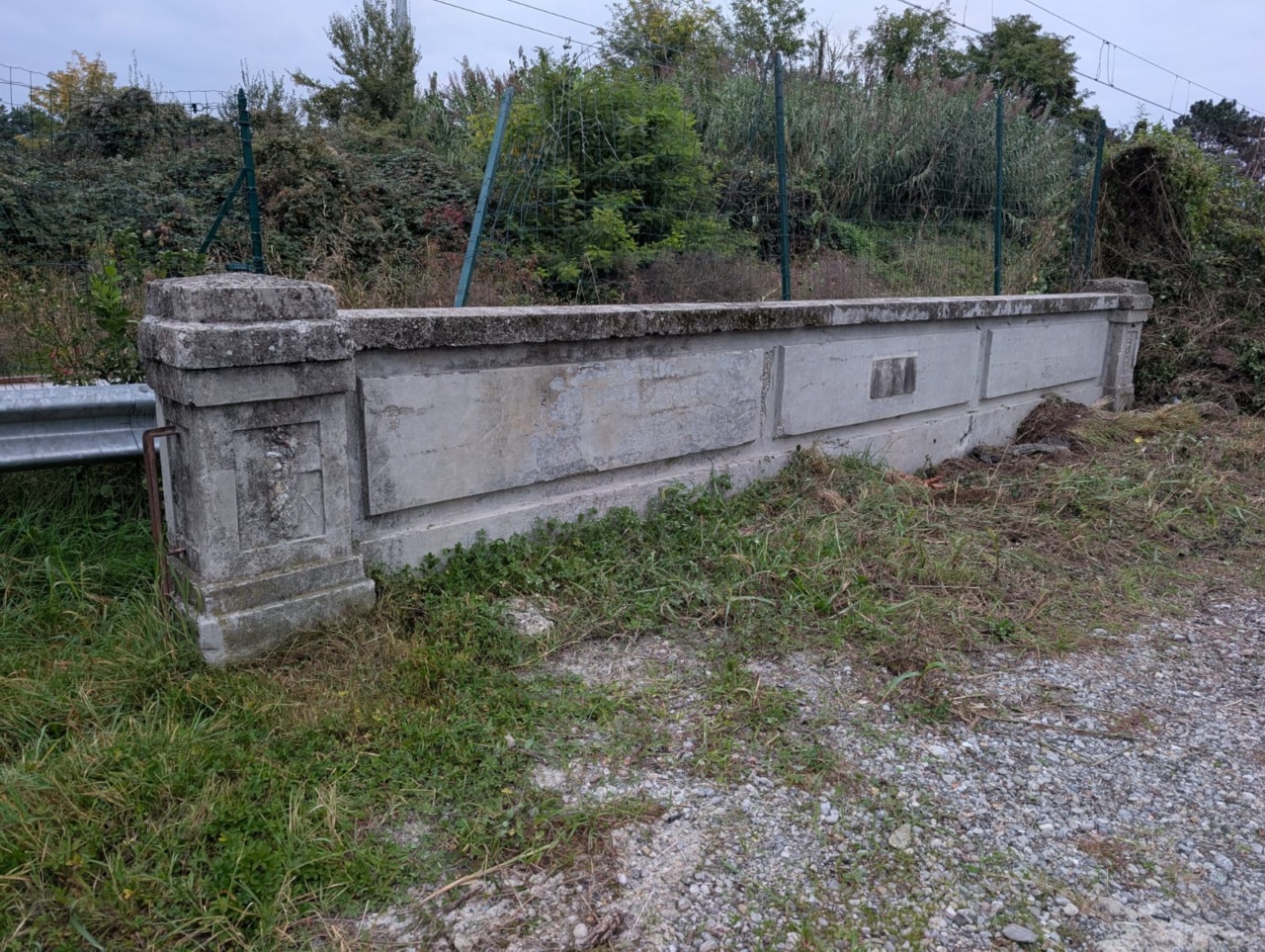 In altri punti del muretto ci sono analoghi simboli del fascismo e, probabilmente, anche dalla parte opposta dei binari, ma sono completamente sommersi dalla vegetazione. Il manufatto si trova in un’area pubblica e, qualche metro più in là, c’è un chiusino del Consorzio Alto Lambro.