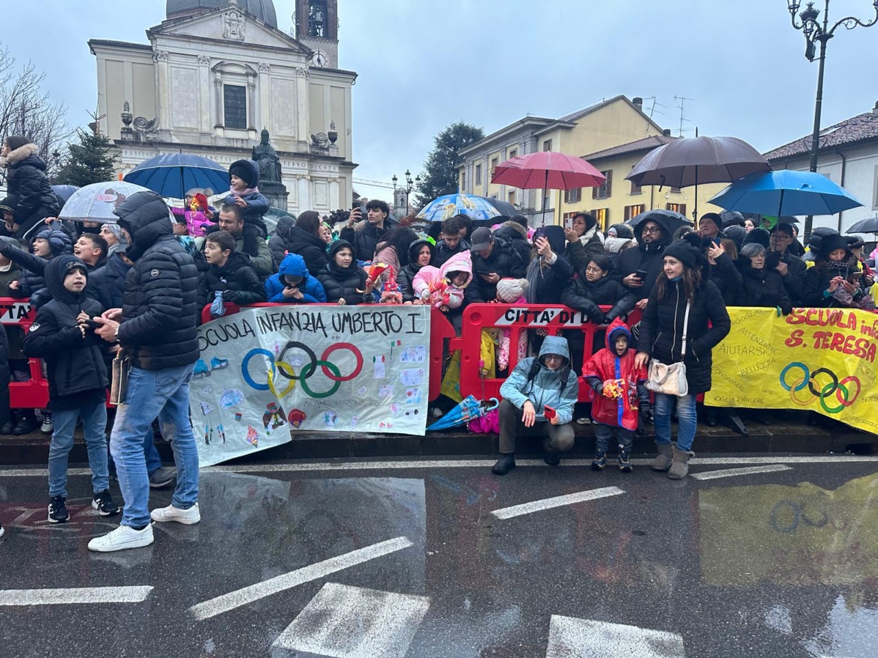 Tanti bambini delle scuole a salutare la fiaccola olimpica