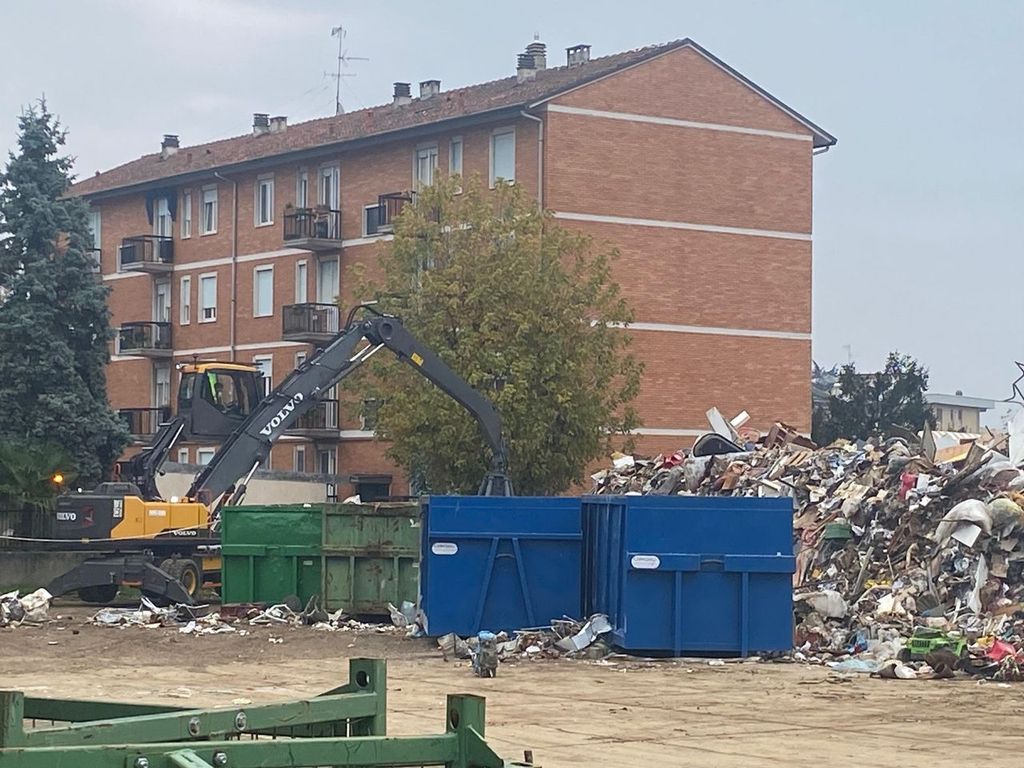 Brianza Energia Ambiente al lavoro a Meda per rimuovere le oltre 6mila tonnellate di rifiuti post alluvione accumulati in piazza Dozio.