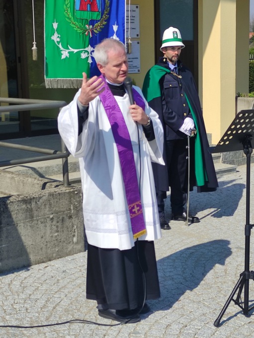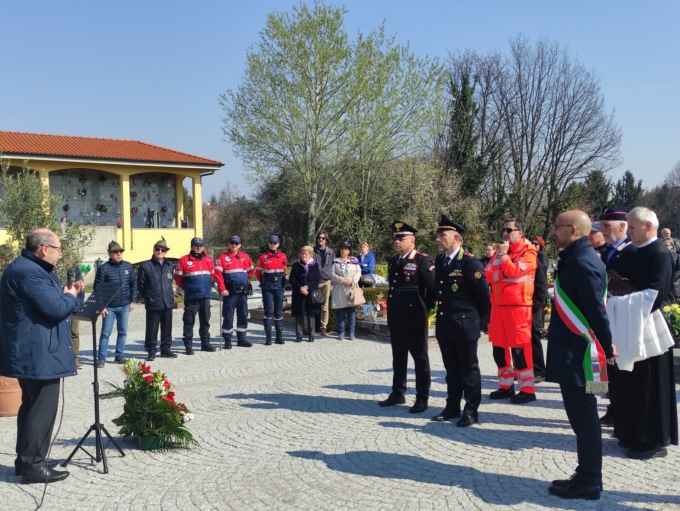 Al termine della toccante lettera di Michela Arlati, il sindaco Mauro Colombo, il parroco don Arnaldo Mavero, il direttore di Asst Brianza Marco Trivelli e la stessa Michela Arlati hanno svelato la lapide apposta al centro del cimitero. Quindi è stato suonato il “Silenzio” con la tromba.