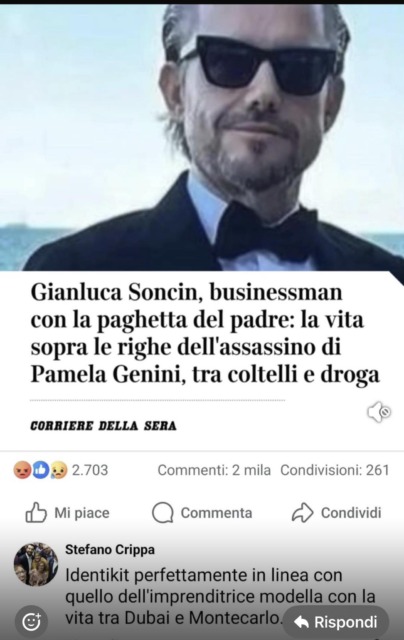 Sotto l’articolo del quotidiano, intitolato «Gianluca Soncin businessman con la paghetta del padre: la vita sopra le righe dell’assassino di Pamela Genini», l’assessore ha infatti commentato: «Identikit perfettamente in linea con quello dell’imprenditrice modella con la vita tra Dubai e Montecarlo».