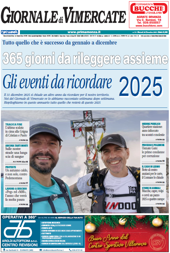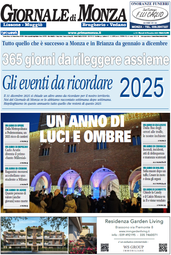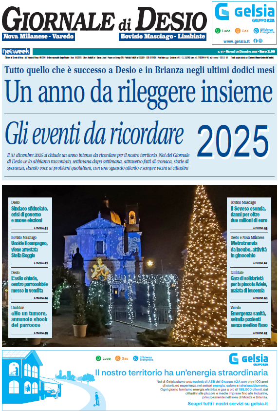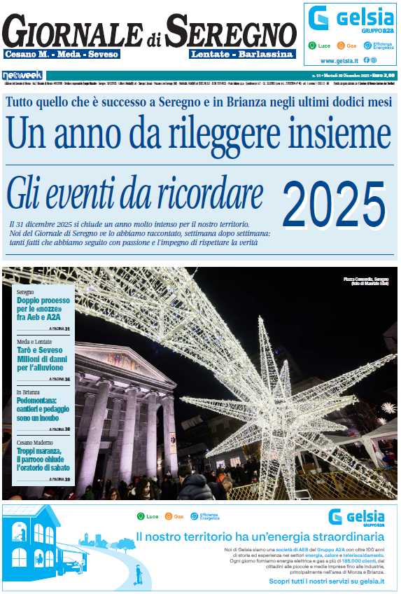 Con la fine dell’anno non andiamo in vacanza. A partire da oggi, martedì 30 dicembre 2025, le redazioni del Giornale di Monza, Giornale di Vimercate, Giornale di Carate, Giornale di Desio e Giornale di Seregno vi aspettano in edicola con un numero speciale dedicato a tutte le notizie e le storie che hanno segnato l’ultimo anno dei nostri territori.