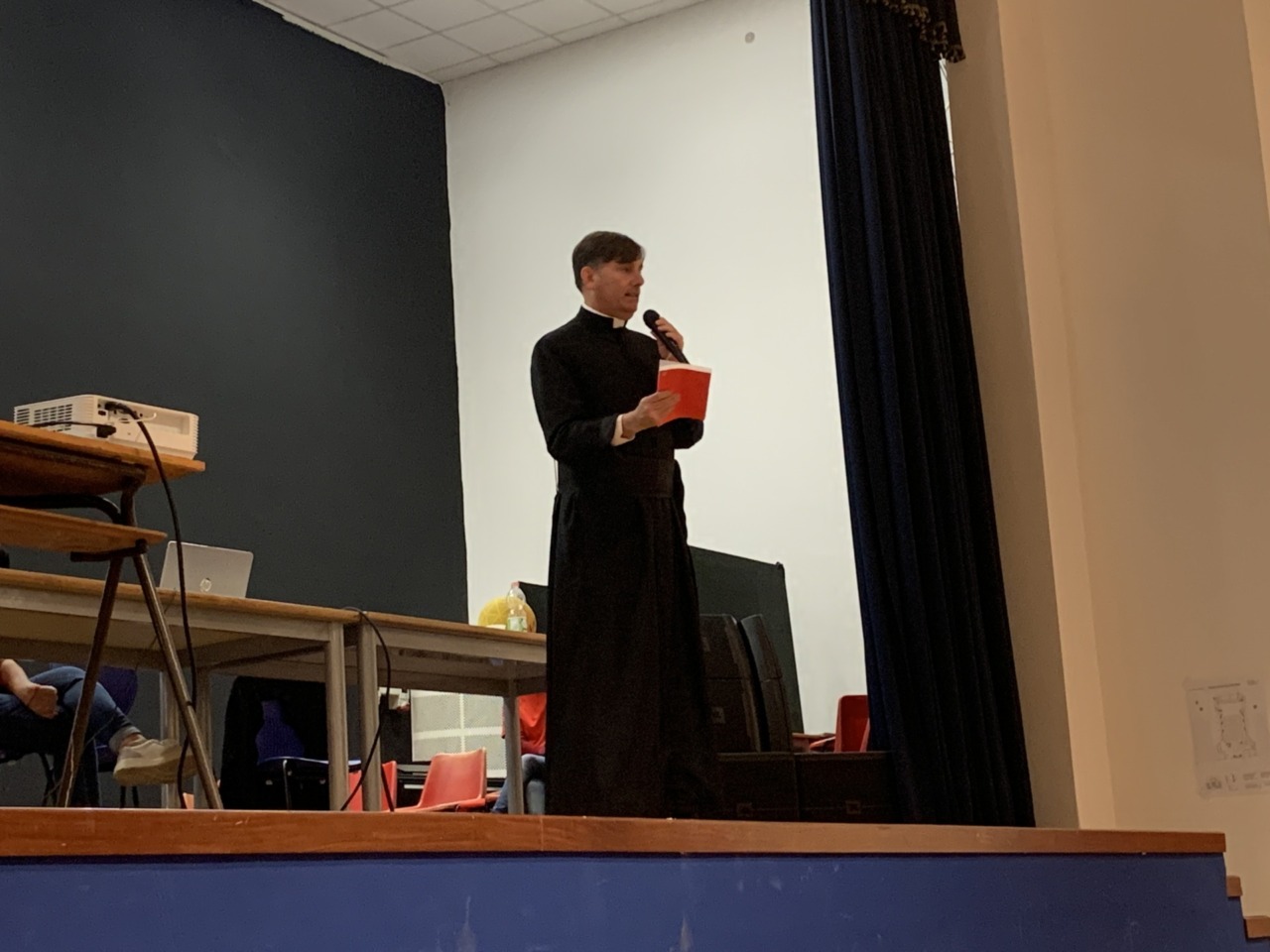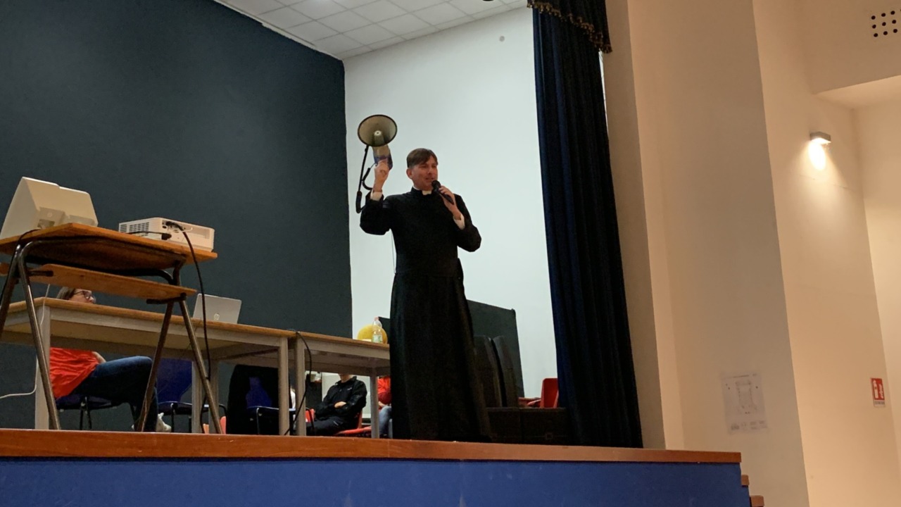 Di questo il sacerdote ha parlato durante il suo intervento in un auditorium gremito. E lo ha fatto impugnando idealmente, come detto, quelle che ritiene essere le armi più forti.