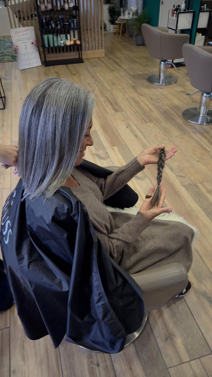 E così ha preso appuntamento dalla sua parrucchiera, che ha legato i lunghi capelli, per poi intrecciarli, tagliarli e sistemare quelli rimasti.