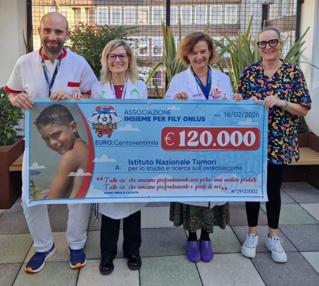 E infatti ancora una volta l’associazione di Misinto fondata da papà Antonio Finocchio e mamma Armida Pancari per ricordare il loro adorato primogenito Filippo Finocchio, morto nel 2018 a soli 15 anni dopo aver lottato contro l’osteosarcoma, nel giorno esatto della sua scomparsa, il 16 febbraio, hanno consegnato un assegno da 120mila euro all’Istituto dei Tumori di Milano, a favore della ricerca scientifica, per sostenere il protocollo dedicato al terribile tumore alle ossa che purtroppo colpisce spesso in età pediatrica.