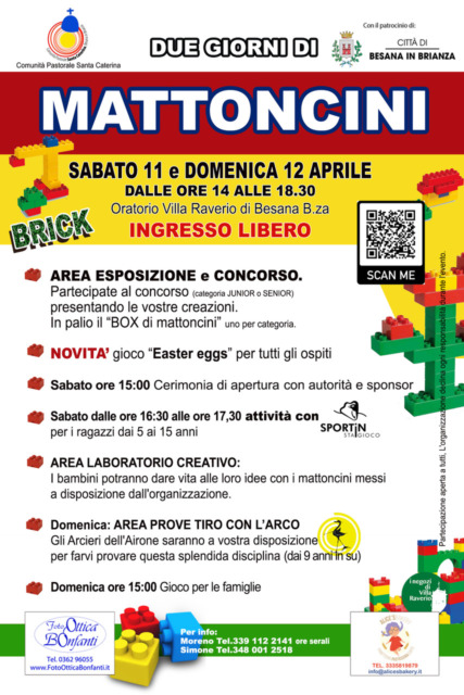 La manifestazione vede la partecipazione attiva della Comunità Pastorale Santa Caterina, con l’oratorio di Villa Raverio, insieme alle realtà commerciali locali come Alice’s Bakery e Foto Ottica Bonfanti, con il patrocinio della Città di Besana in Brianza. Non mancherà il contributo delle associazioni del territorio, tra cui ASDO Villa Raverio, Sportin e il gruppo degli Arcieri dell’Airone, tutti impegnati nell’organizzazione di attività coinvolgenti pensate per rendere queste giornate davvero indimenticabili per famiglie e bambini di ogni età. Per tutti i partecipanti, oltre alla possibilità di votare il modulo più bello, sarà proposto anche il coinvolgente gioco degli “Easter Eggs”, una caccia agli elementi nascosti all’interno dell’esposizione, a cui grandi e piccoli saranno invitati a partecipare.