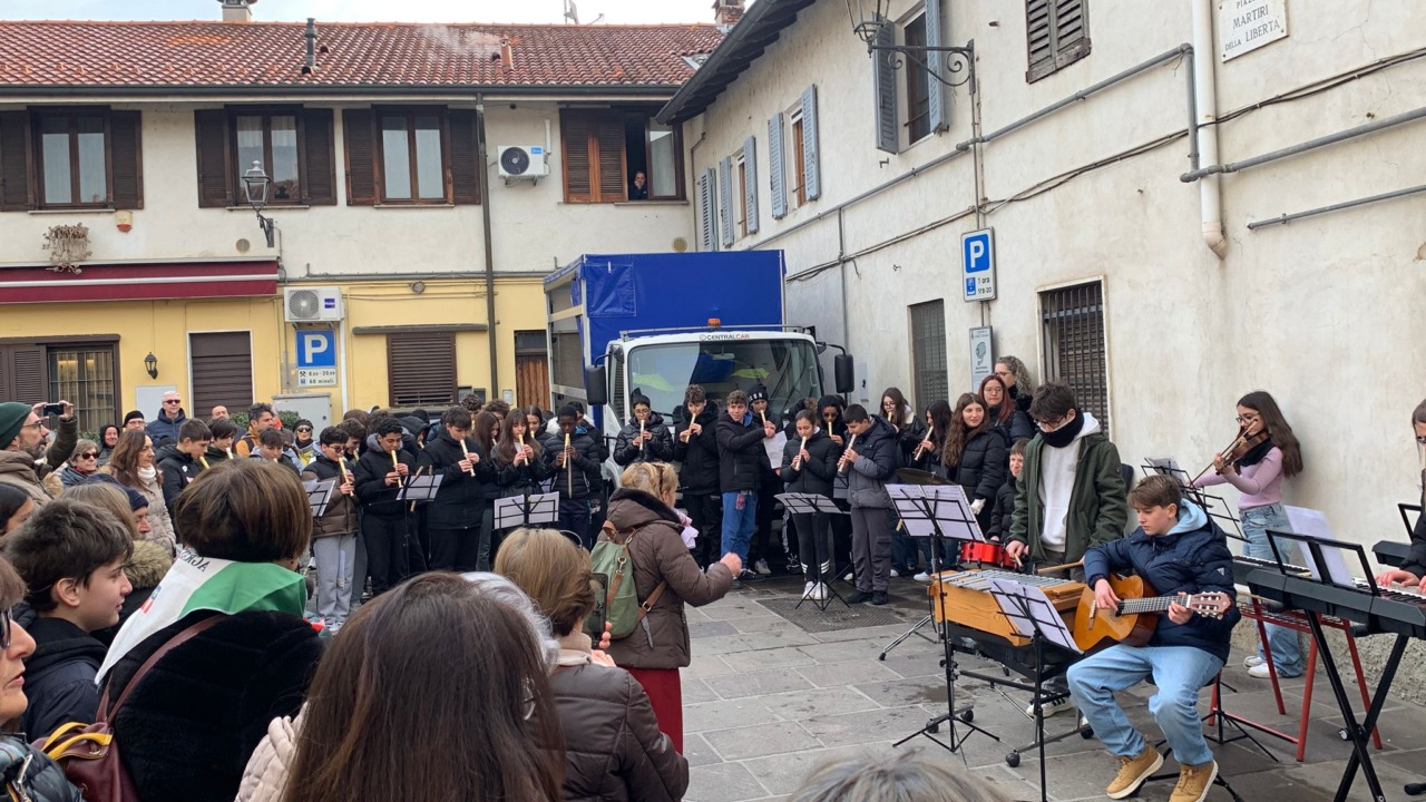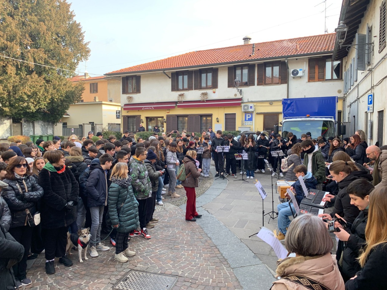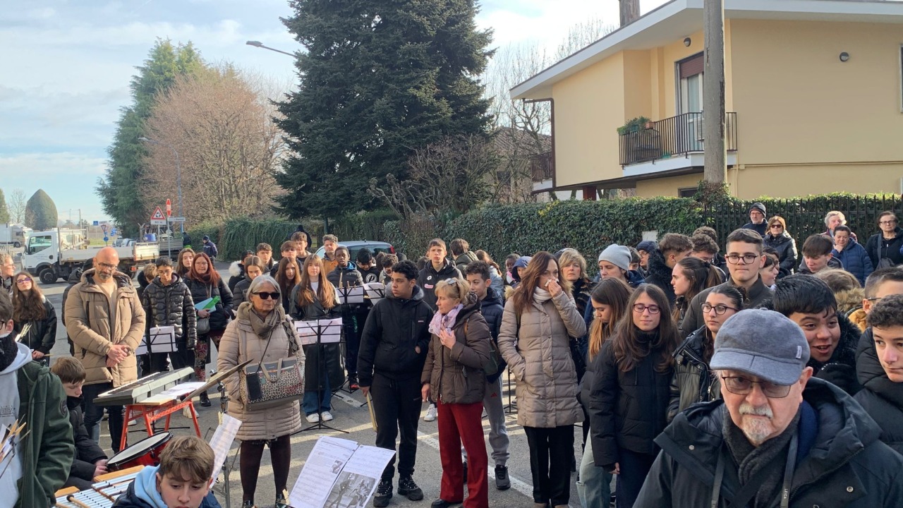 Presenti anche centinaia di studenti della scuola secondaria di primo grado Bontempi che, insieme ad Anpi, hanno approfondito la storia dei due agratesi a cui sono state dedicate le due pietre e hanno accompagnato la cerimonia con le note dell’Inno di Mameli e de “La vita è bella”.