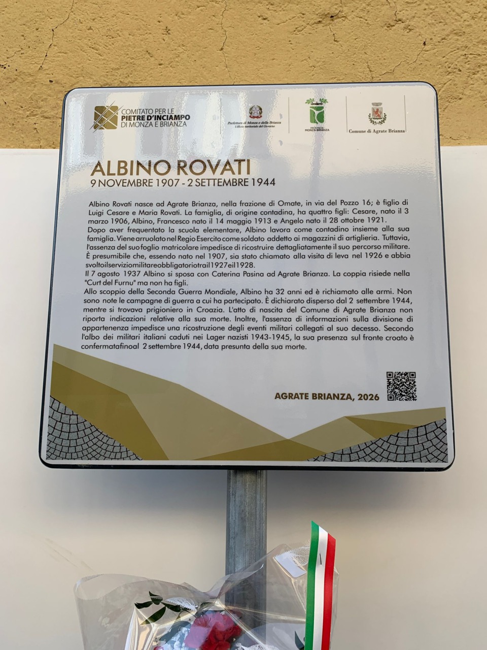 Nello specifico le due pietre (sono 5 in totale quelle posate ad Agrate) sono state dedicate ad Albino Rovati, dichiarato disperso in Croazia nel settembre del 1944; e a Carlo Gaviraghi, disperso in prigionia in Germania nel maggio del 1945.