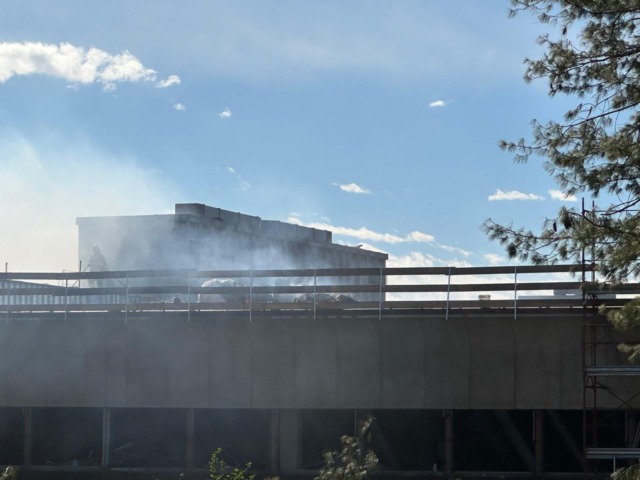Fiamme nel comparto ex Ibm di Vimercate: la Tangenziale Est è avvolta dal fumo mentre i Vigili del fuoco sono in azione per spegnere l’incendio.