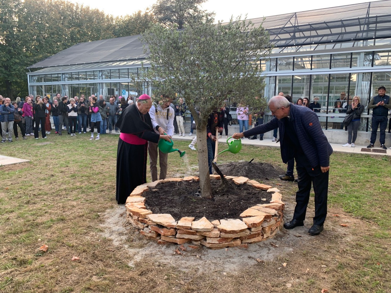 Infine l’ideale messa a dimora, al centro del giardino della scuola, di un ulivo. A prendersene cura saranno proprio le studentesse e gli studenti.