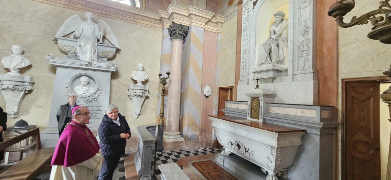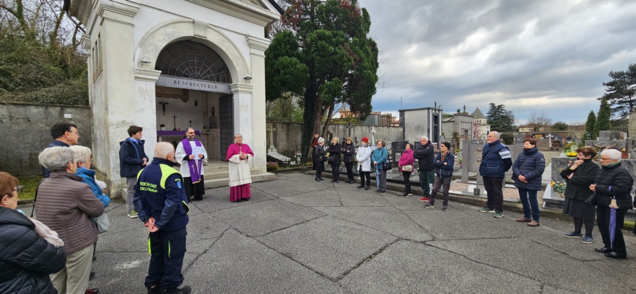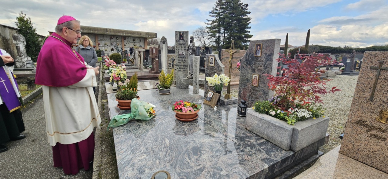 La visita a Velate ha avuto un significato molto particolare per monsignor Delpini. A partire dalla tappa al cimitero, nel primo pomeriggio, dove l’arcivescovo ha avuto la possibilità non solo di vedere da vicino la celebre Cappella Giulini, dove sono contenute alcune delle opere più famose dell’artista Vincenzo Vela, ma anche di porgere il proprio omaggio a un amico volato via fin troppo presto. Qui, infatti, riposano le spoglie mortali di don Vanni Magni, sacerdote scomparso nel 1998, che era stato compagno di seminario di monsignor Delpini.