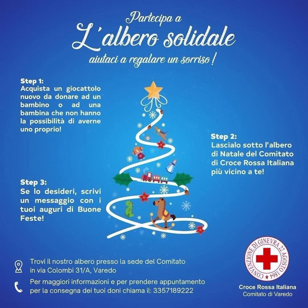 si desidera che siano consegnati insieme al regalo; chiamando CRI Varedo al numero 335 7189222, per concordare il momento per lasciare il dono sotto l’Albero solidale della Croce Rossa di Varedo, in via Colombi 31a (presso la stazione ferroviaria).