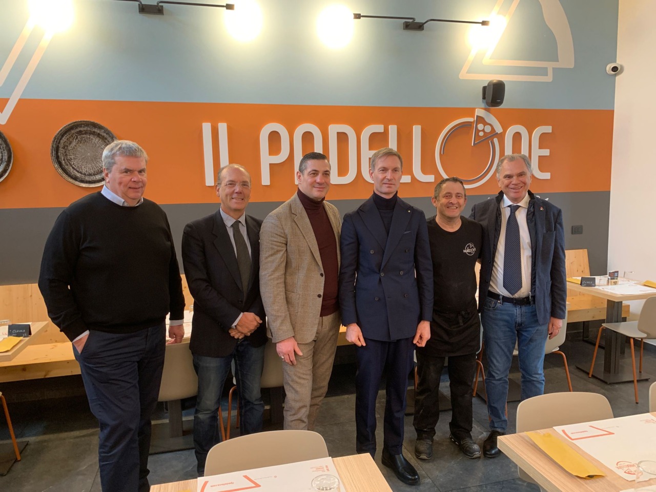 Dopo il brindisi, il trasferimento di poche decine di metri per raggiungere “Il Padellone”, storica pizzeria per più di 40 anni nella sede di via Cavour e da un paio d’anni nella più ampia e funzionale location di via Marinai d’Italia. A guidarla, oggi come allora, il mitico Santino Costarella, affiancato dai famigliari e da un nutrito gruppo di giovani dipendenti. Anche per lui l’intervista di rito da parte del presidente Romani e il racconto di una storia imprenditoriale fatta di tanto lavoro, ma anche di successi e riconoscimenti. E, naturalmente, l’assaggio della pizza.