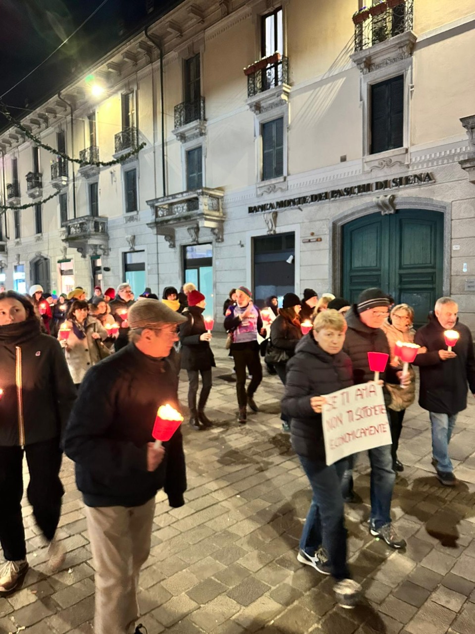 A organizzare la fiaccolata è stata la neonata “Futura”, la Casa delle donne che ha aperto ufficialmente i battenti solo poche settimane fa, in collaborazione con il Comune. I partecipanti, oltre un centinaio, si sono dati appuntamento in Villa Camperio, da dove poi è partito il corteo. Moltissime, naturalmente, le donne presenti, che però non erano sole: con loro anche moltissimi uomini, volontari, rappresentanti delle istituzioni, intere famiglie e semplici cittadini. A dimostrazione che la violenza di genere è una piaga che riguarda tutti, l’intera comunità, e non solo le donne.