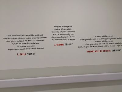 Sulle pareti i brani delle più celebri canzoni che parlano di amore e cura