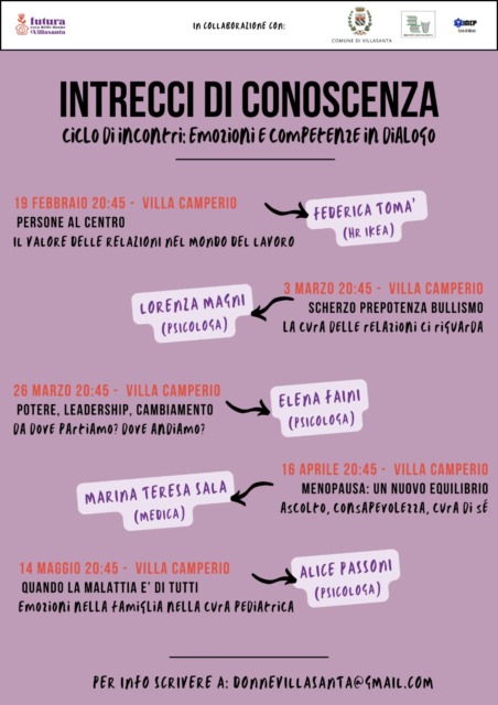 Prende il via a Villasanta la rassegna “Intrecci di Conoscenza – Emozioni e competenze in dialogo”, un ciclo di cinque incontri dedicati ai temi delle relazioni, del lavoro, della salute e della crescita personale.