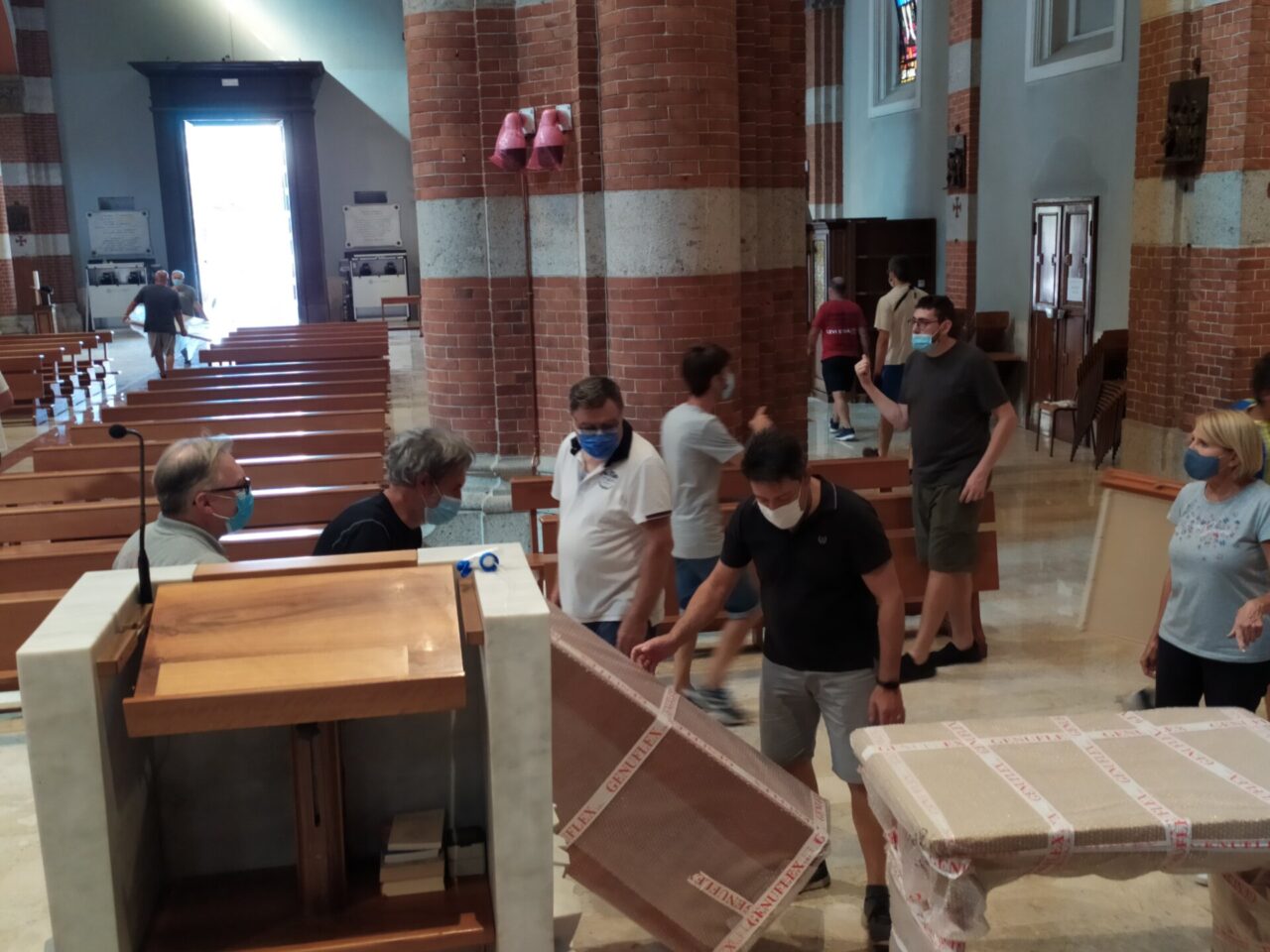 A rimettere in ordine la chiesa, ripulirla, riempirla dei suoi arredi: le panche nuove, i quadri, le icone, le immagini sacre, il coro, è stato un esercito di volontari che ha risposto senza esitazione all’appello di don Maurizio Tremolada, responsabile della Comunità pastorale della Madonna del Castagno che aveva chiesto un aiuto.