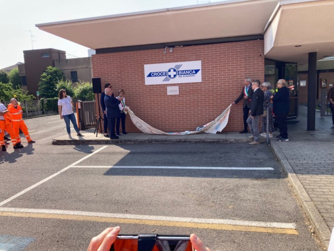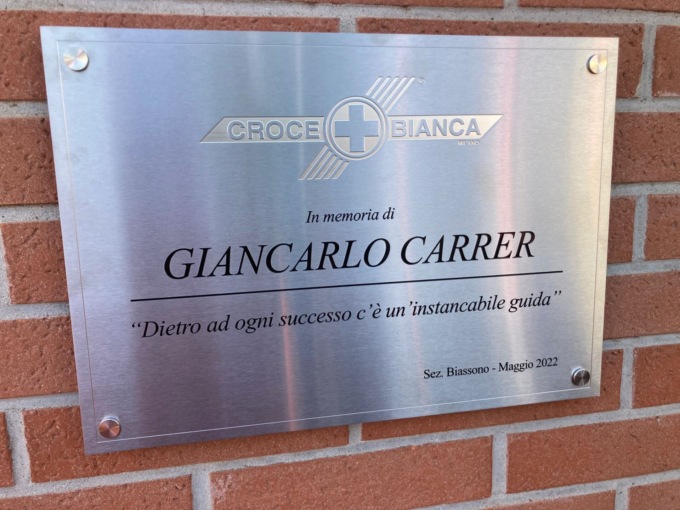 “Dietro ad ogni successo c’è un’instancabile guida”, le parole impresse sulla targa in ricordo di Giancarlo Carrer, il presidente onorario e fondatore della Croce Bianca di Biassono, al quale è stata intitolata la sede di via Mazzini.