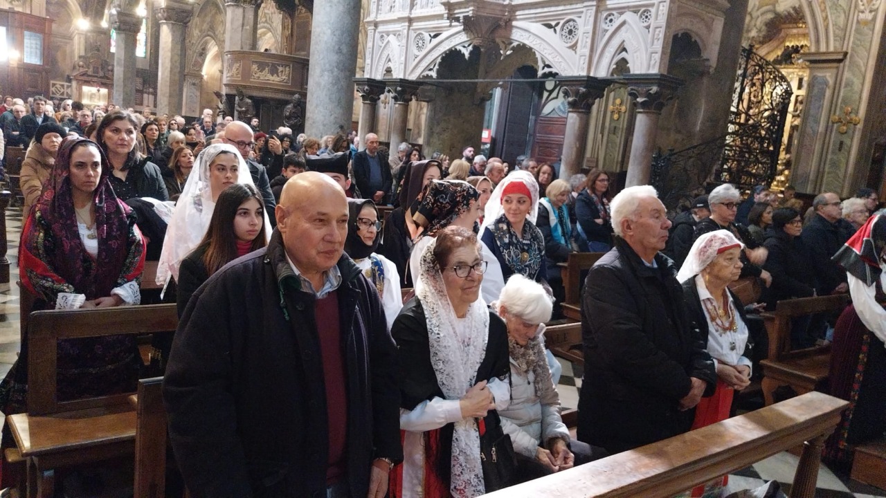 Commovente, al termine della celebrazione, il canto dedicato alla Madonna «Mamma, Fizza e Isposa de su Signore», intonato dopo la comunione e lo scambio della pace. Un passaggio che ha emozionato molti dei presenti.