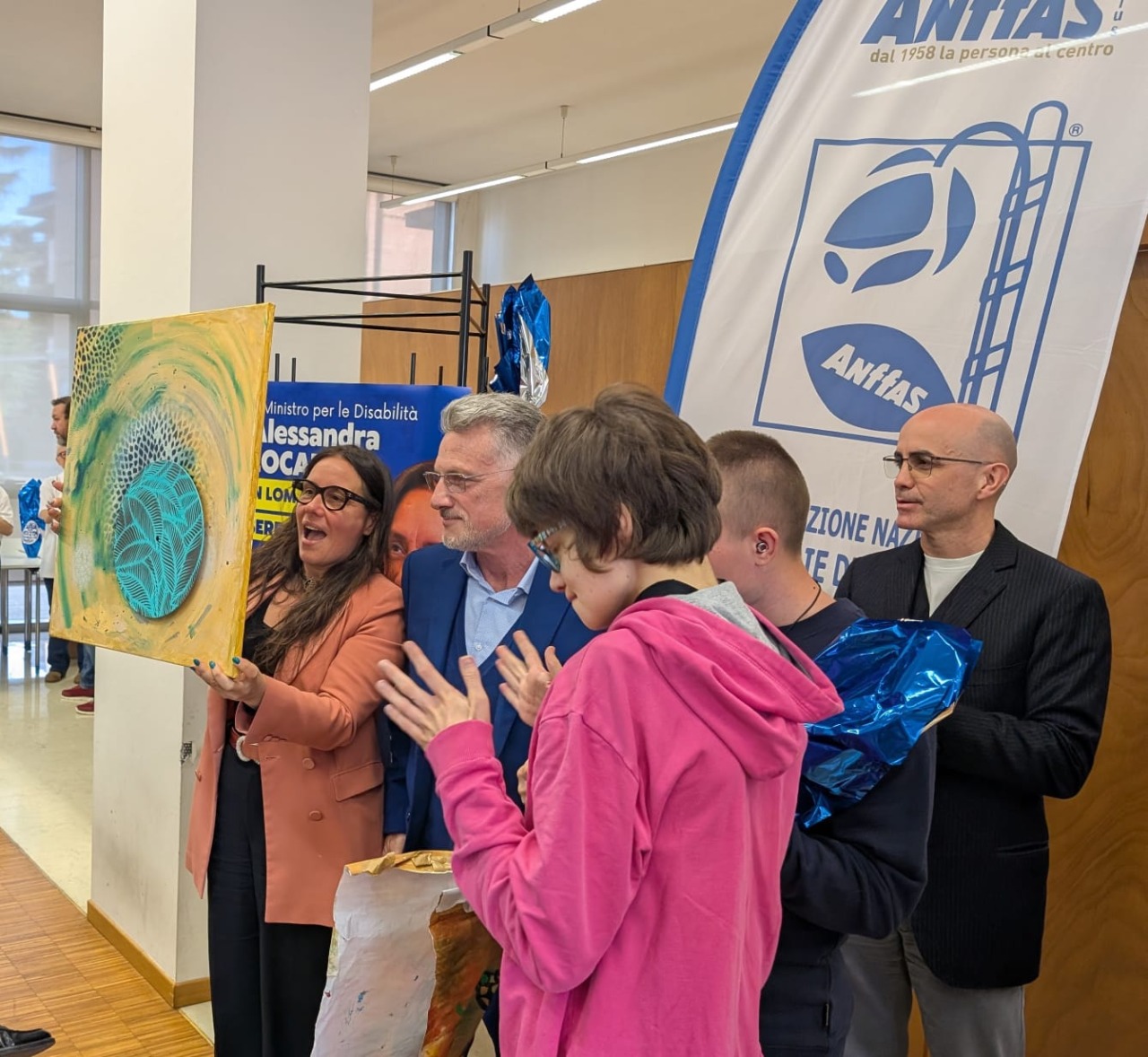 “Anffas Lombardia e Anffas Brianza sono un modello di crescita, di innovazione, di progetti e collaborazione sul territorio di esempio per tutta Italia”, ha commentato il ministro Locatelli, che ha salutato “tutti gli artisti dell’Anffas Seregno, gli operatori, i volontari che sono il cuore pulsante e i genitori”, di cui ha ricordato i grandi sacrifici. “Anffas è un punto di riferimento serio per la fiducia che ha dato in questi anni a tante famiglie per il tempo ricreativo, lavorativo e abitativo: tutto quello che stiamo portando avanti con “il progetto di vita”, una grande sfida. I ragazzi hanno voluto dire quanto valgono, il valore che ogni persona è importante è la sfida che ci stiamo ponendo anche come Governo”. Locatelli ha citato la riforma della disabilità e il progetto di vita. “Il nostro ministero è sì senza portafoglio, ma ha investito due miliardi di euro in tre anni e mezzo. L’ultimo investimento i 380 milioni del bando Vita e opportunità, una risorsa importante su tutto il territorio italiano per sviluppare con gli enti del Terzo settore politiche che abbiano a che fare con la dimensione abitativa, lavorativa e creativa. Nelle persone bisogna vedere le potenzialità e non fermarsi ai limiti, serve cambiare la prospettiva e investire sulle persone: se diamo opportunità e strumenti, i risultati arrivano come in biblioteca”.