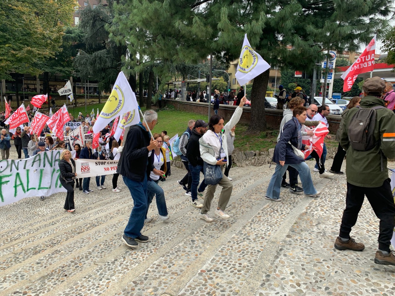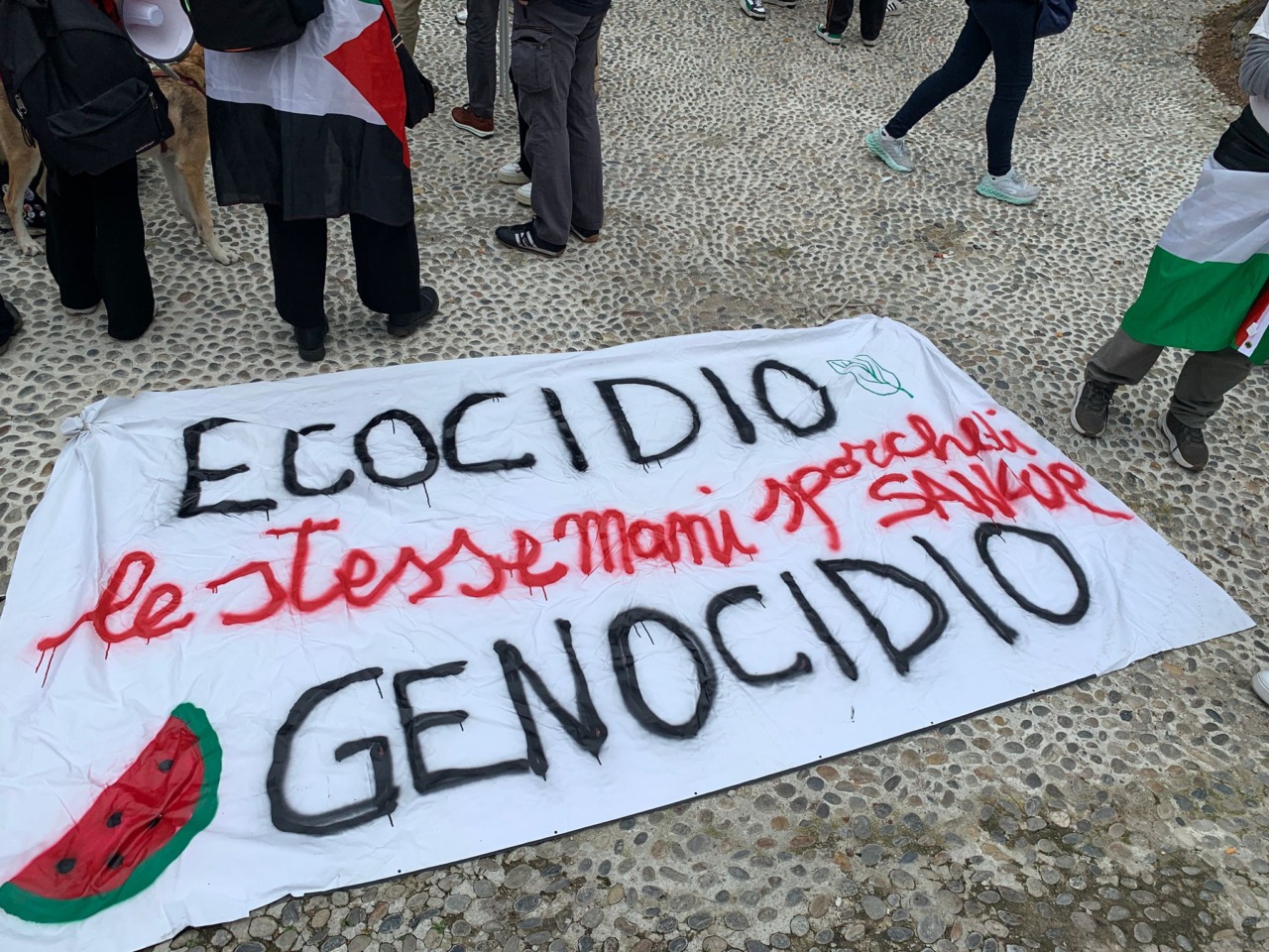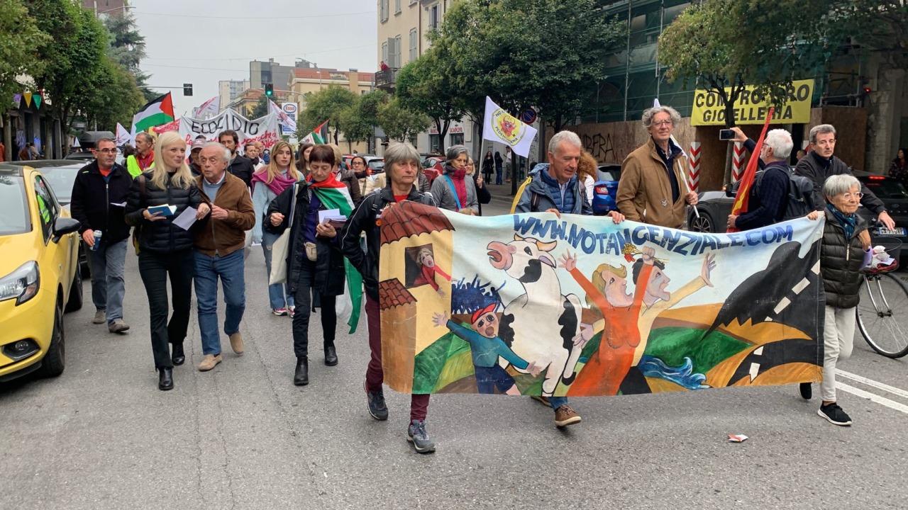 Non mancano inoltre nel corteo anche tante bandiere della Palestina, in solidarietà al popolo palestinese per la guerra in corso nella Striscia di Gaza.