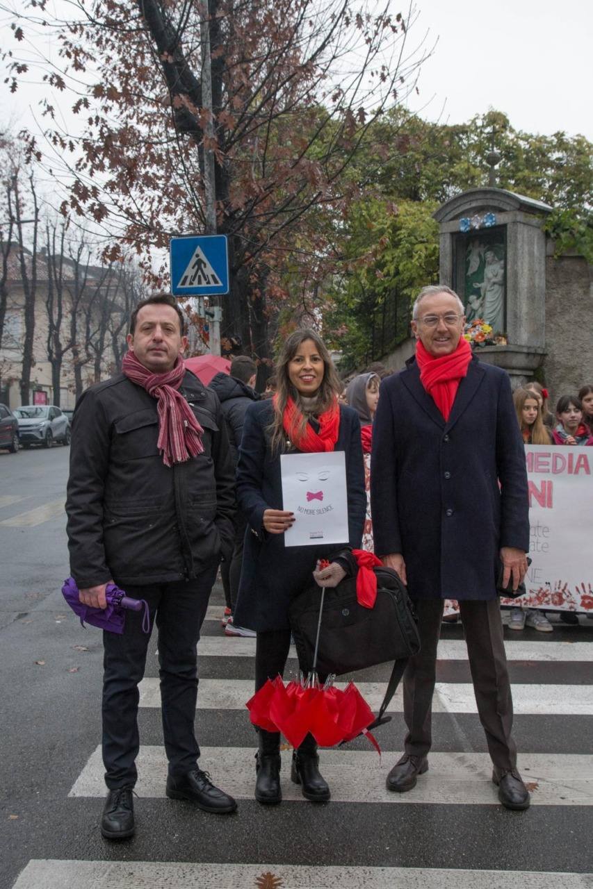 Oltre 1200 persone, tra studenti, docenti, istutizioni e semplici cittadini hanno preso parte ieri, lunedì 24 novembre, a Seregno a “La Camminata in Rosso – Terza Edizione” organizzata dall’Associazione Nazionale Antiviolenza Senza Veli Sulla Lingua.