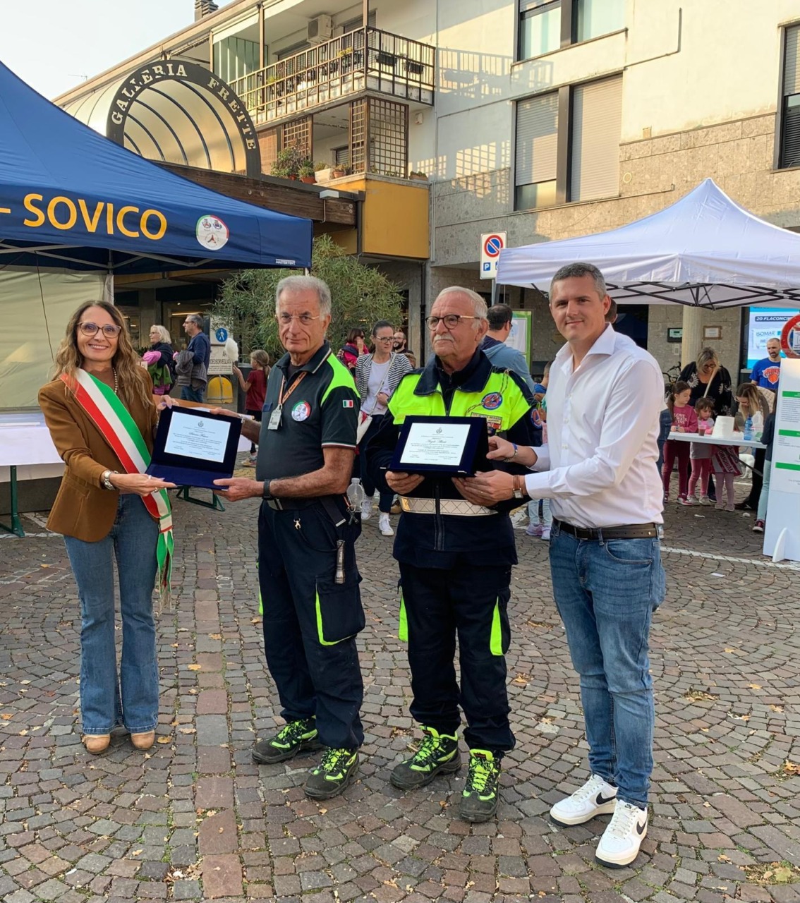 «Per il valore esemplare del servizio alla sicurezza, alle scuole e per le prestazioni continue a vantaggio della comunità». Con questa motivazione l’Amministrazione comunale di Sovico ha premiato due volontari della Protezione civile, Silvano Frison e Angelo Alberti, durante la terza edizione della giornata della Protezione civile, che ha visto anche la presenza della consigliera regionale Alessia Villa. Un riconoscimento da parte del sindaco di Sovico, Barbara Magni, e dell’assessore alla Protezione civile, Mattia Barni, conferito nel 20esimo anniversario di fondazione dell’associazione Protezione civile «Franco Raso» di Macherio e Sovico.