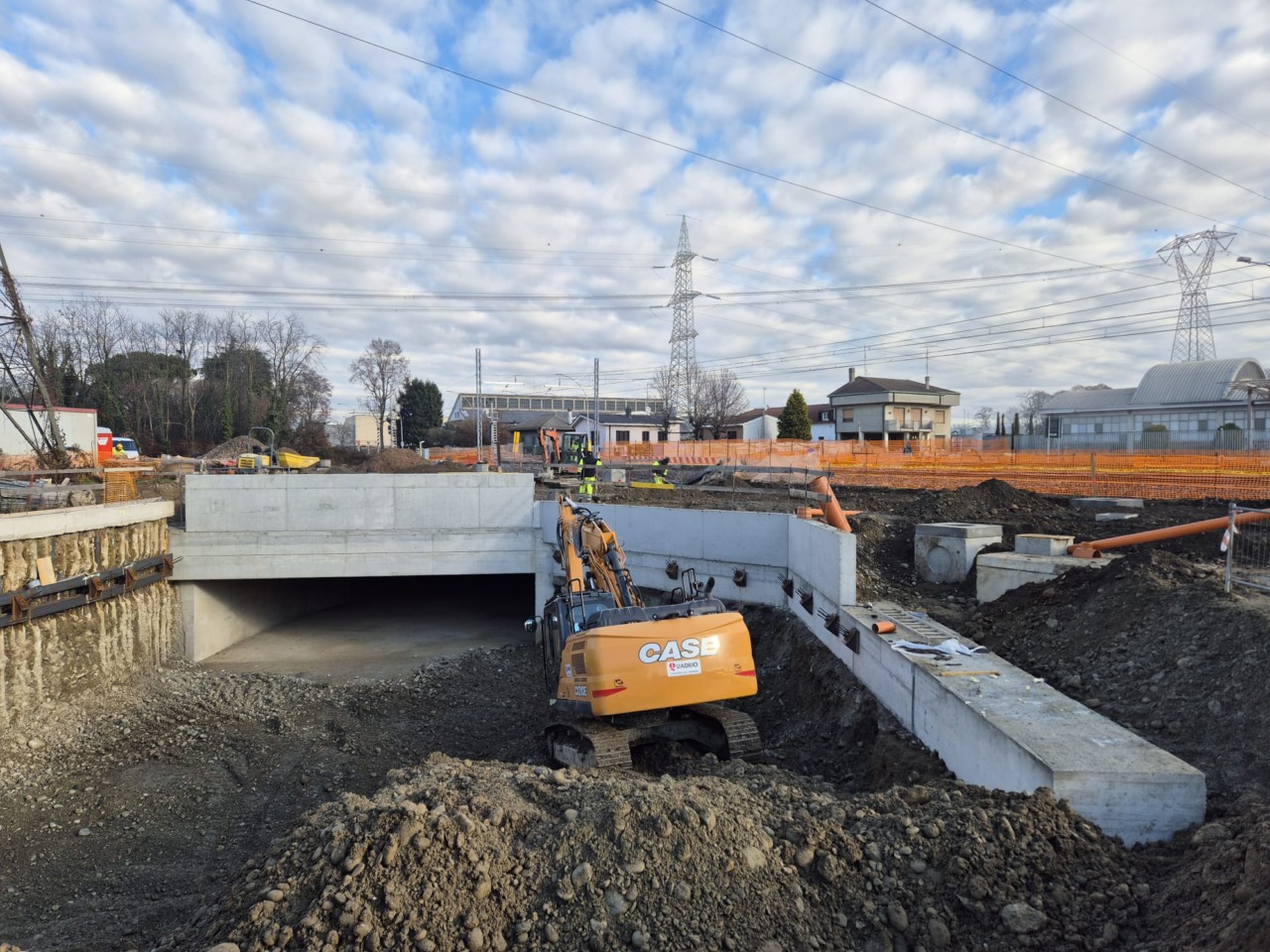 Avanzano secondo programma gli interventi legati alla nuova infrastruttura viaria. Per quanto riguarda il sottopasso veicolare, si sono concluse le attività di realizzazione dei conci della nuova galleria artificiale e del manufatto scatolare in cemento armato per l’attraversamento della linea ferroviaria. Il completamento di queste opere ha consentito lo smontaggio del ponte ferroviario provvisorio e, a seguito dell’esito positivo delle prove di carico, la conseguente riapertura al traffico di via della Repubblica e il ripristino della linea ferroviaria. Sono attualmente in corso le lavorazioni per la costruzione delle rampe di accesso, sia sul lato est sia sul lato ovest. Parallelamente, procedono i lavori per la nuova viabilità di variante di via Como, necessaria per l’avanzamento della realizzazione delle strutture della rampa ovest e delle opere impiantistiche.