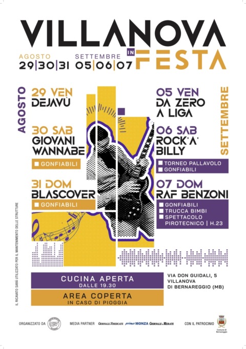 È tutto pronto per l’edizione 2025 di Villanova in festa, il tradizionale evento organizzato dal CSV – Centro Sportivo Villanova. La manifestazione si svolgerà come di consueto all’interno dell’oratorio della frazione di Bernareggio ed è in programma per ben due weekend: si comincia venerdì 29, sabato 30 e domenica 31 agosto, per poi proseguire venerdì 5, sabato 6 e domenica 7 settembre. Ancora una volta il rientro dalle vacanze e il ritorno alla routine settembrina saranno resi più dolci dalle proposte di Villanova in festa, appuntamento utile per ritrovare amici, conoscenti e per divertirsi in compagnia. «Le serate sono assicurate anche in caso di pioggia – ha sottolineato Davide Colnaghi, presidente del CSV – disponiamo di un’area in gran parte coperta, con un palco all’esterno e uno all’interno… per cui non c’è nulla da temere!».