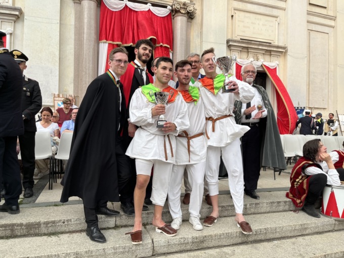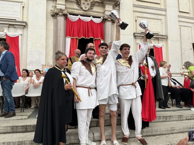 Dietro a San Pietro al Dosso, che ha corso con Lucas Tallone e Davide Tagliabue, coppia che ancora una volta ha tagliato per prima il traguardo, si è posizionato San Giovanni, al secondo posto, mentre al terzo è arrivata la Bassa. Quindi: San Pietro e Paolo, Foppa, Dugana, San Giorgio, Prati, Piazza, Busasca e ultimo San Carlo. Alla contrada vincitrice andrà il gonfalone, simbolo della competizione, realizzato quest’anno dagli studenti del liceo artistico Modigliani di Giussano. A firmarlo è stata Gaia Colantuono, classe 2F, che ha saputo rielaborare in modo originale i temi legati alla celebre battaglia. Angelo Famulari, maestro di contrada, ha espresso soddisfazione per la vittoria: “Siamo davvero contenti”. La vicepresidente del Comitato organizzatore del Palio degli Zoccoli, Antonia Lumini ha invece ringraziato “tutti per l’impegno e per la grande presenza e anche il maltempo non è arrivato. Un grazie a Roberto Nava, il presidente, per tutta l’organizzazione e per l’ottima riuscita”.