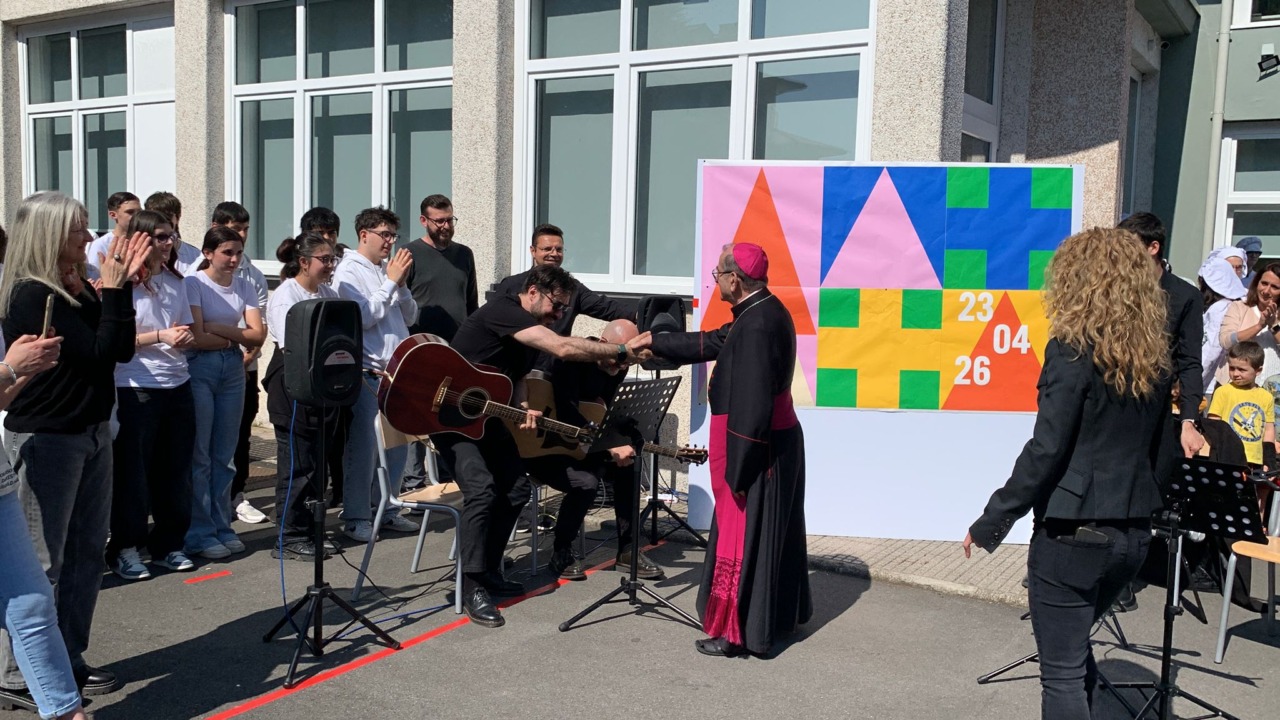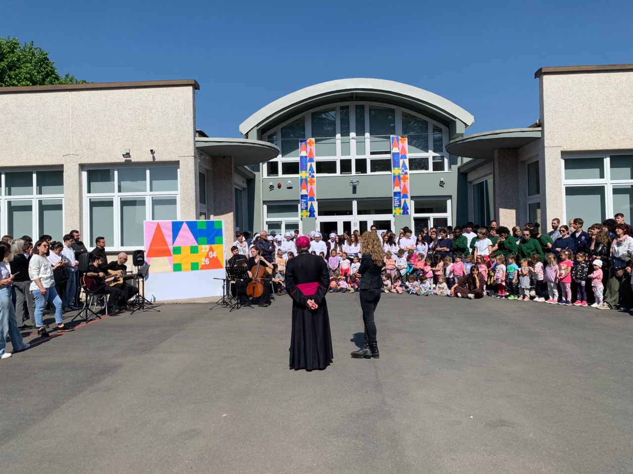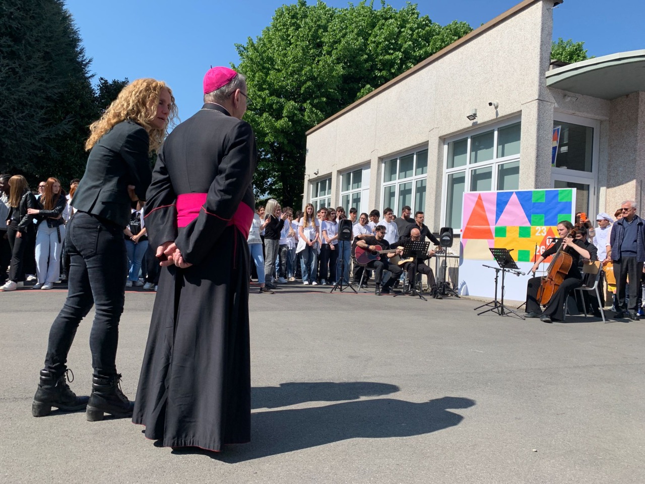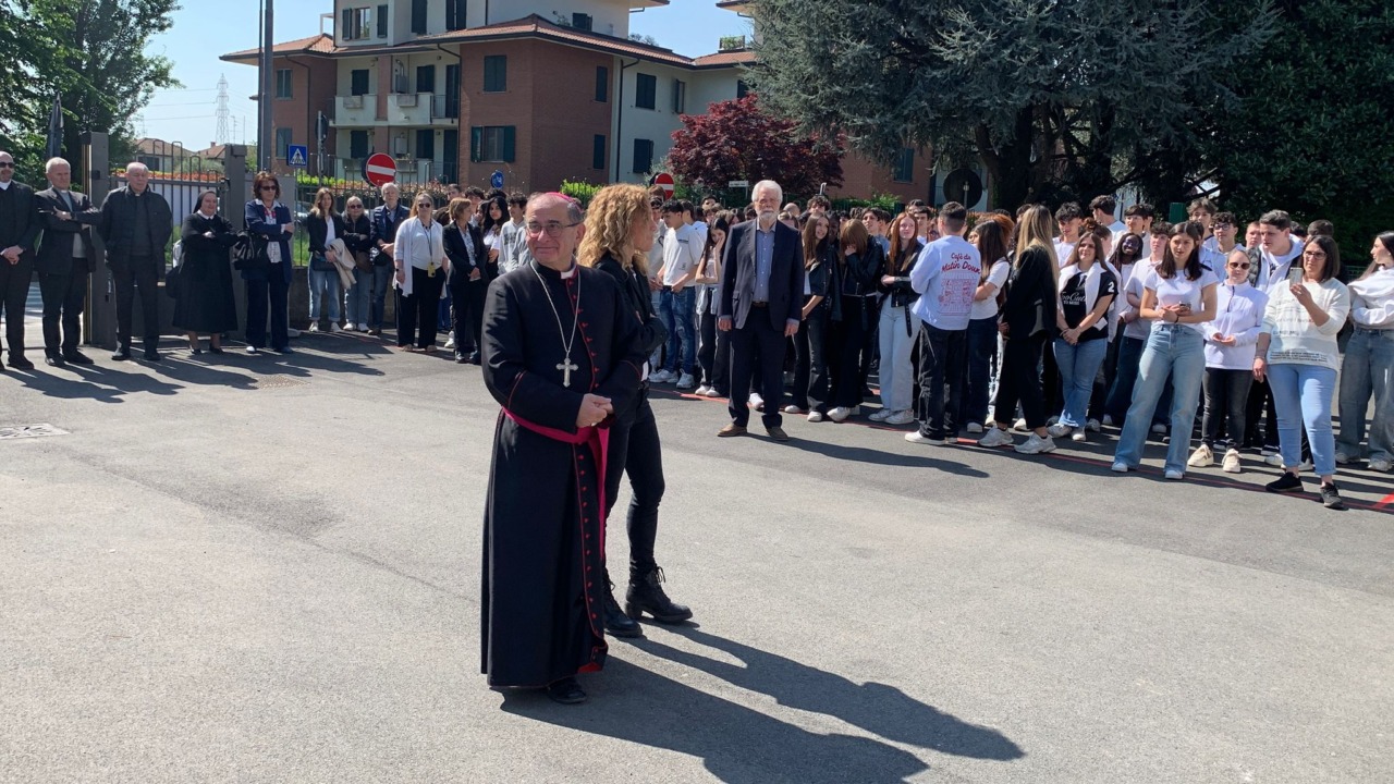 I ragazzi, insieme ai bimbi della materna della frazione, hanno accolto l’arcivescovo nel cortile della nuova sede distaccata della scuola, in via Velasca. Ad accogliere Delpini anche i vertici dell’Ente di formazione, il responsabile della Comunità pastorale don Maurizio Rolla, il decano del Vimercatese don Arnaldo Mavero e il responsabile della Pastorale scolastica don Giorgio Porta. Un lungo applauso, le note di un quartetto di musicisti e poi il discorso del vescovo agli studenti.
