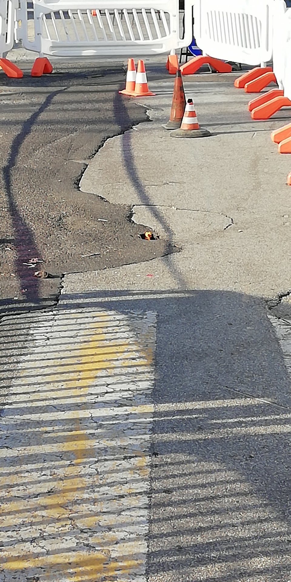 Nel tardo pomeriggio di ieri giovedì 19 aprile il Comune ha dovuto transennare parte di via Dante per la comparsa di quello che sembra l’ennesimo occhio pollino in paese.