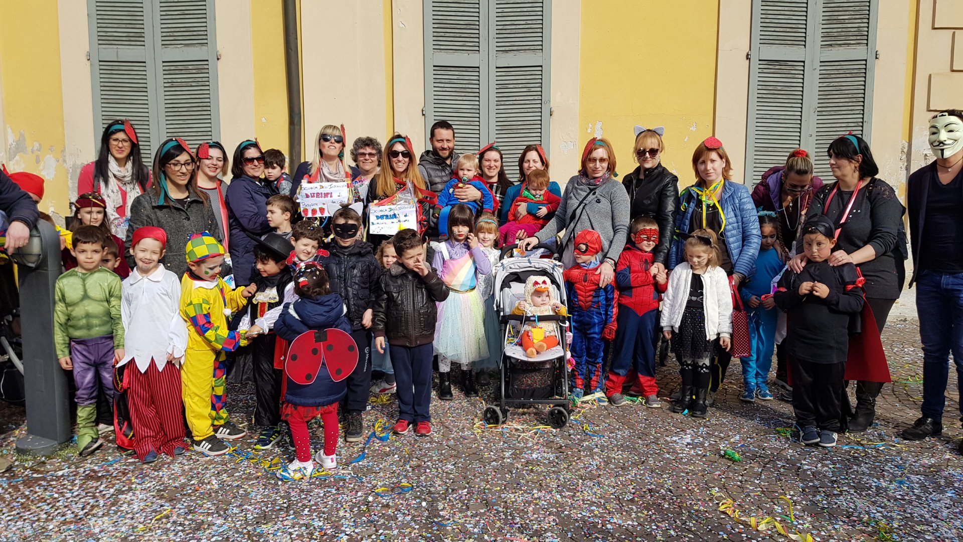 Presenti alla sfilata anche i genitori e i piccoli che frequentano l’asilo parrocchiale Durini di Bernate.