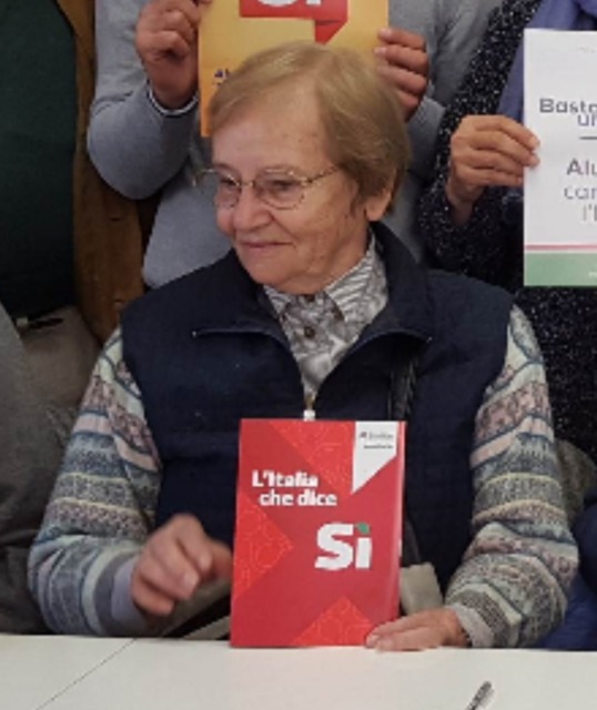 La storica insegnante, nel 2016, insieme al marito Italo Giovagnoli (con loro c’erano anche Michele Calloni, Rosalba Colombo, Emilio Caglio, Valentina Del Campo, Maria Rosa Brioschi, Enrico Casali, Camilla De Marco, Enrico Farinone, Anna Maria Iorino, Maria Magni, Roberto Manzoni, Roberto Mollica Bisci, Dario Sala, Fabrizio Confalonieri e Ambrogio Riboldi con la figlia Carla) si era battuta nel comitato “Basta un Sì” per il referendum sulla riforma costituzionale in programma per il 4 dicembre di quell’anno.