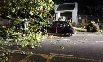 Albero sradicato dal maltempo si abbatte su una macchina