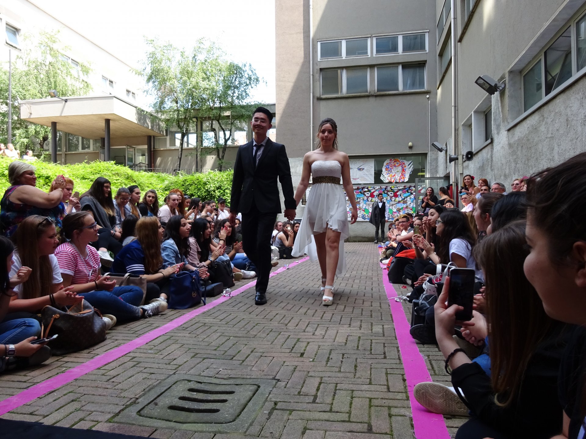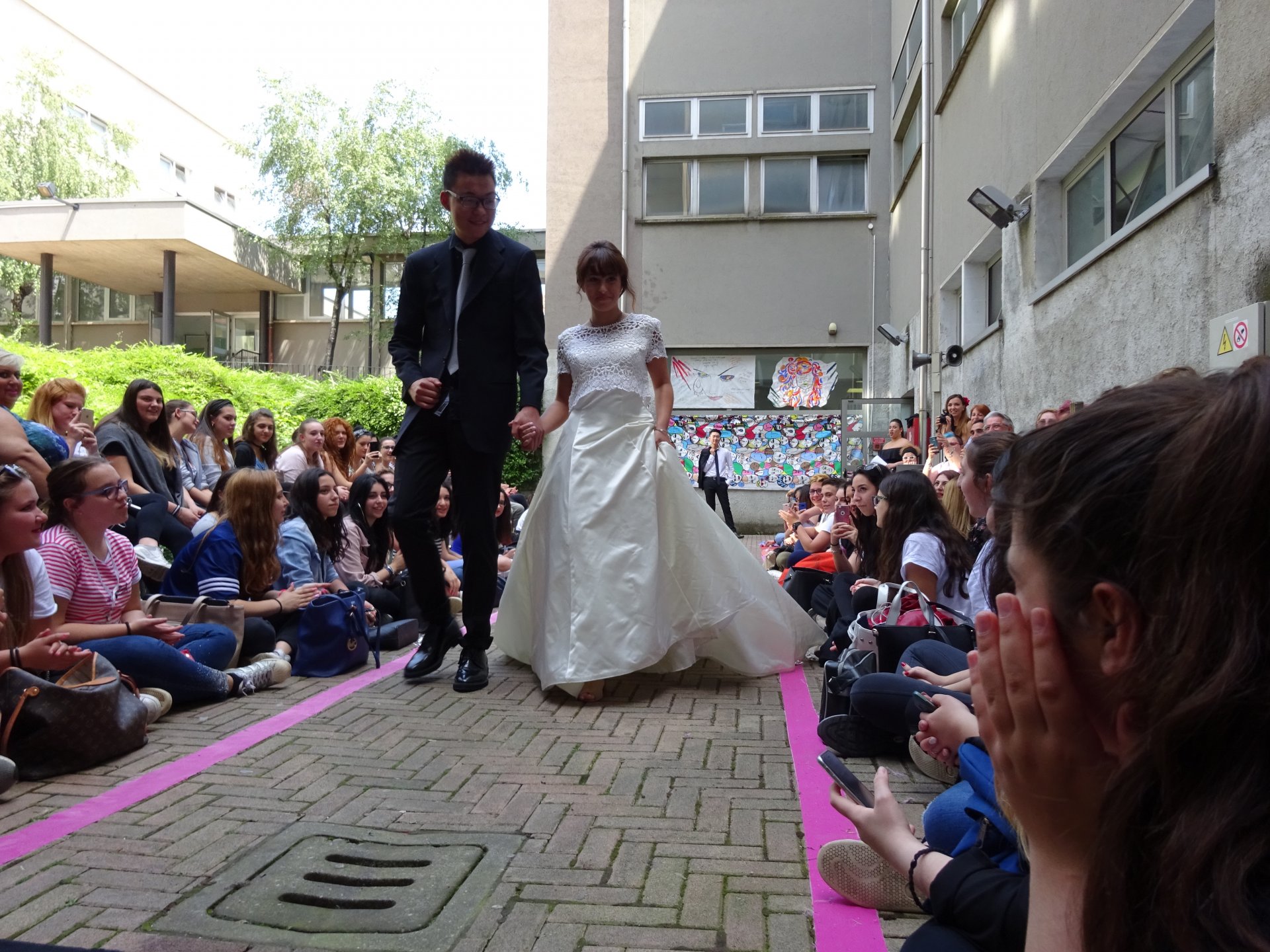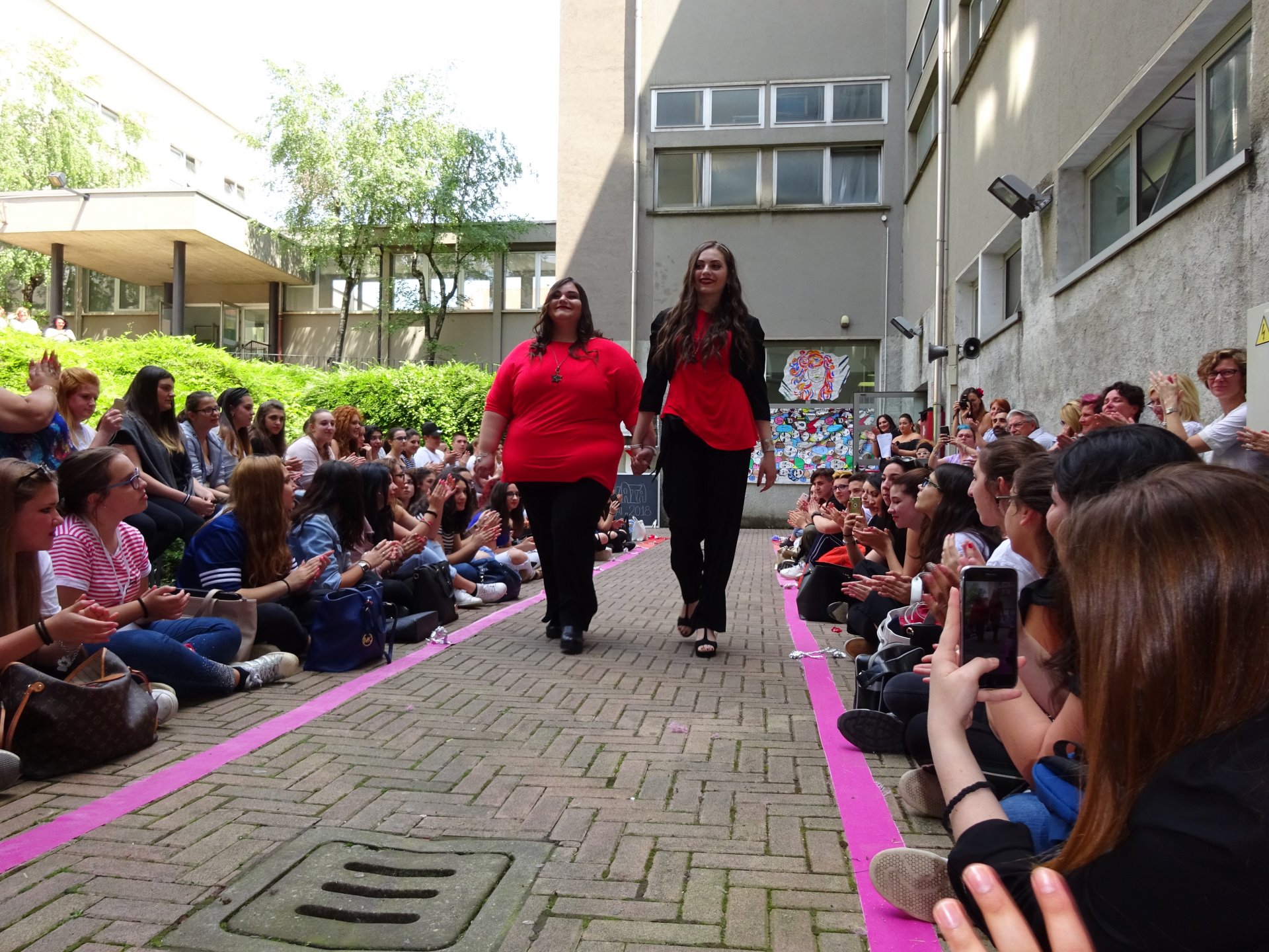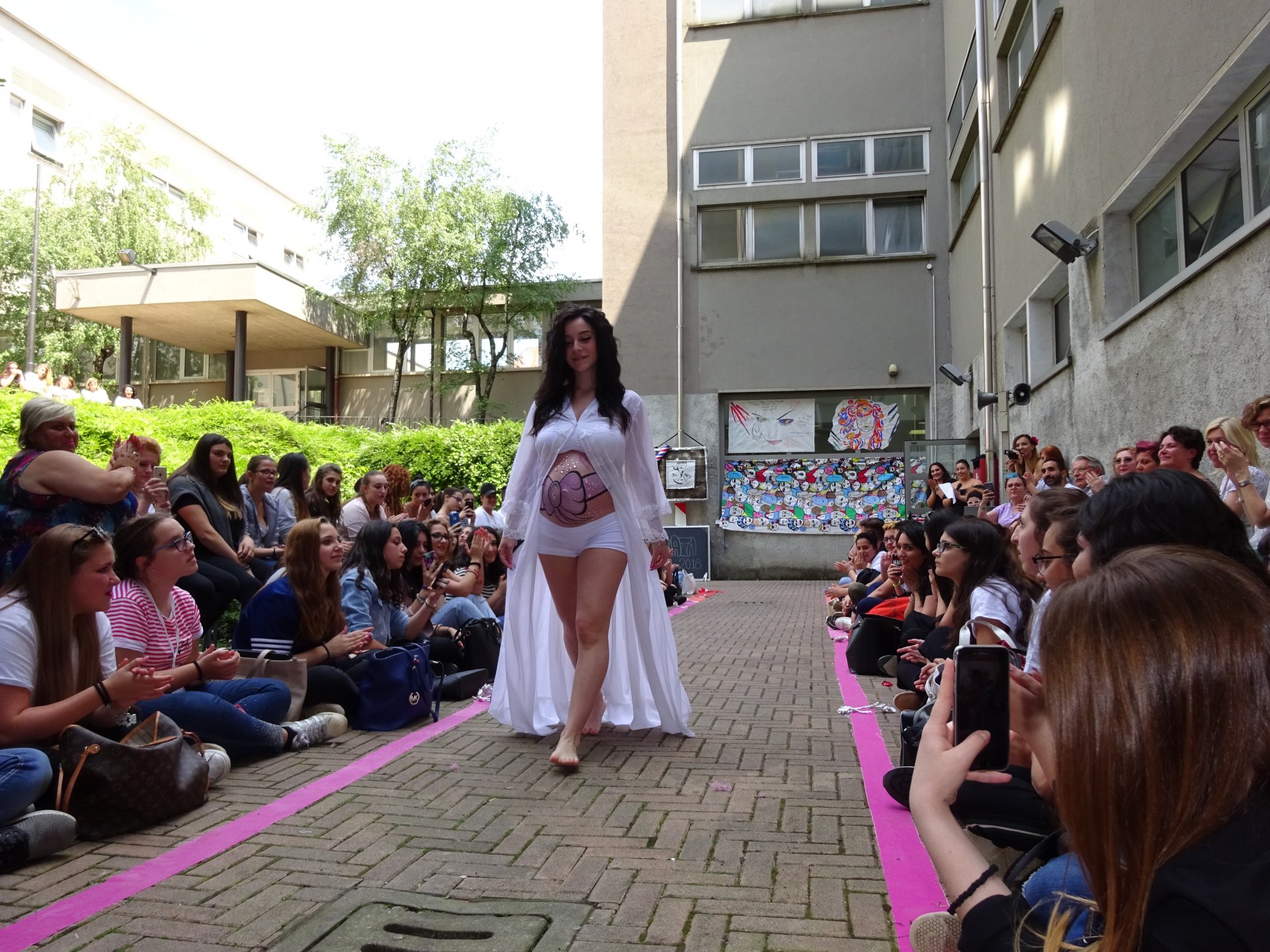 Lo staff di giovanissime truccatrici e parrucchiere ha preparato i modelli e le modelle che hanno sfilato di fronte ad un pubblico di genitori, docenti e alunni. “È stato un lavoro collettivo di insegnanti e allievi, ai quali è stata lasciata ampia libertà”, ha aggiunto la direttrice. La lezione si è strutturata per tematiche: gli anni Cinquanta, gli sposi, il fantasy e gli anni Sessanta, per concludere con un messaggio di uguaglianza ed integrazione: a sfilare per ultime sono state infatti due ragazze dal fisico molto diverso ma vestite allo stesso modo, ed una in dolce attesa. “Per essere uguali non bisogna per forza essere simili, dobbiamo essere sempre fieri di quello che siamo”: questo l’ultimo – e più importante – tema presentato dagli studenti della scuola professionale di via Cozzi.