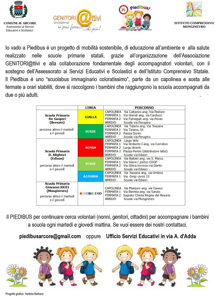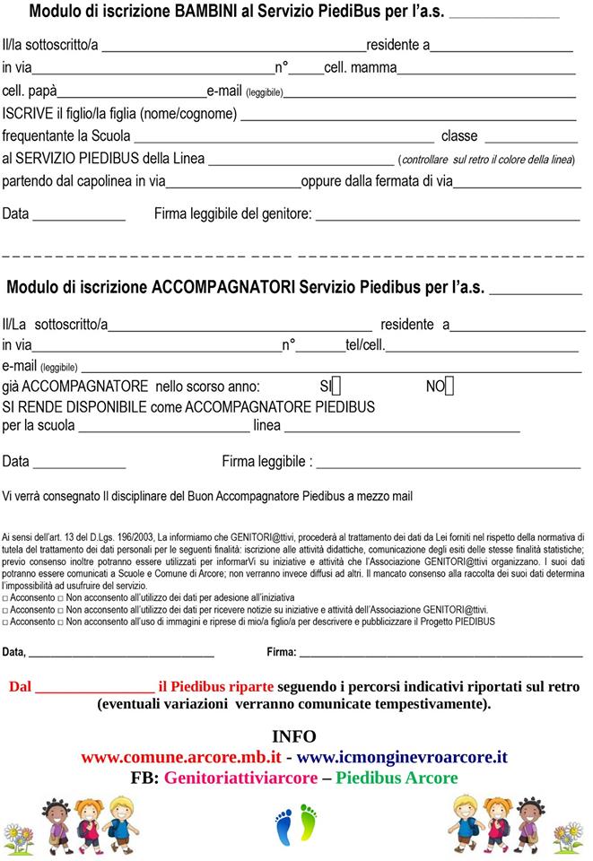 – compilare il modulo in allegato, o richiederlo via mail a piedibusarcore@gmail.com