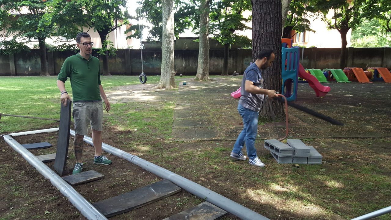 “Durante i sabati di lavoro, ad aiuarci, non ci saranno solamente mamme, papà e volontari, ma anche due ragazzi, richiedenti asilo e ospitati in città, che si sono messi a disposizione per aiutarci a svolgere i compiti più importanti – ha continuato Zamboni – Per esempio oggi uno di loro ha tagliato l’erba, mentre un altro ragazzo ha lavorato in giardino, aiutadoci a creare un percorso sensoriale. Io ritengo che tutta questa struttura abbia delle potenzialità davvero importanti che devono essere sfruttate. Colgo l’occasione per ringraziare di cuore le educatrici e tutto il personale che quotidianamente lavora nella strutura e che ha scelto di venire anche oggi, sabato, a darci una mano in asilo, completamente gratis”.
