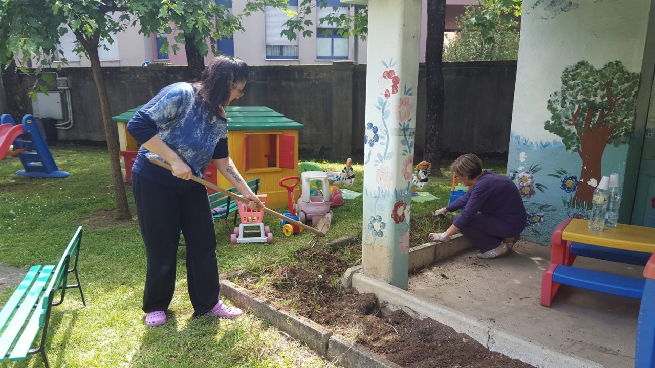 Tutti al lavoro per rendere più bello e ospitale il giardino esterno della civica fondazione San Giuseppe che accoglie l’asilo nido e la scuola dell’infanzia.
