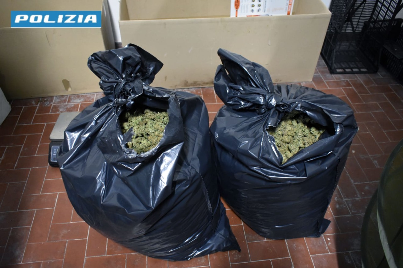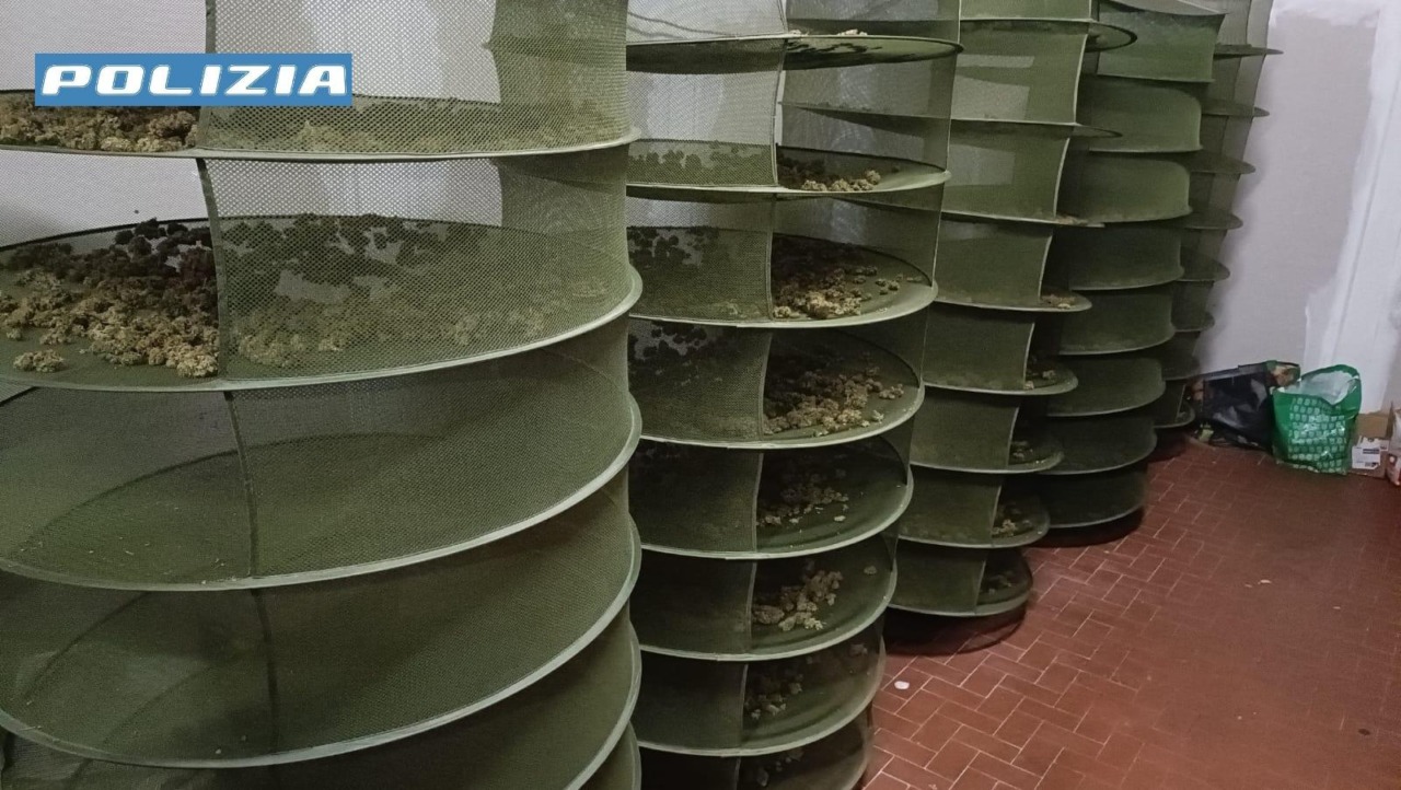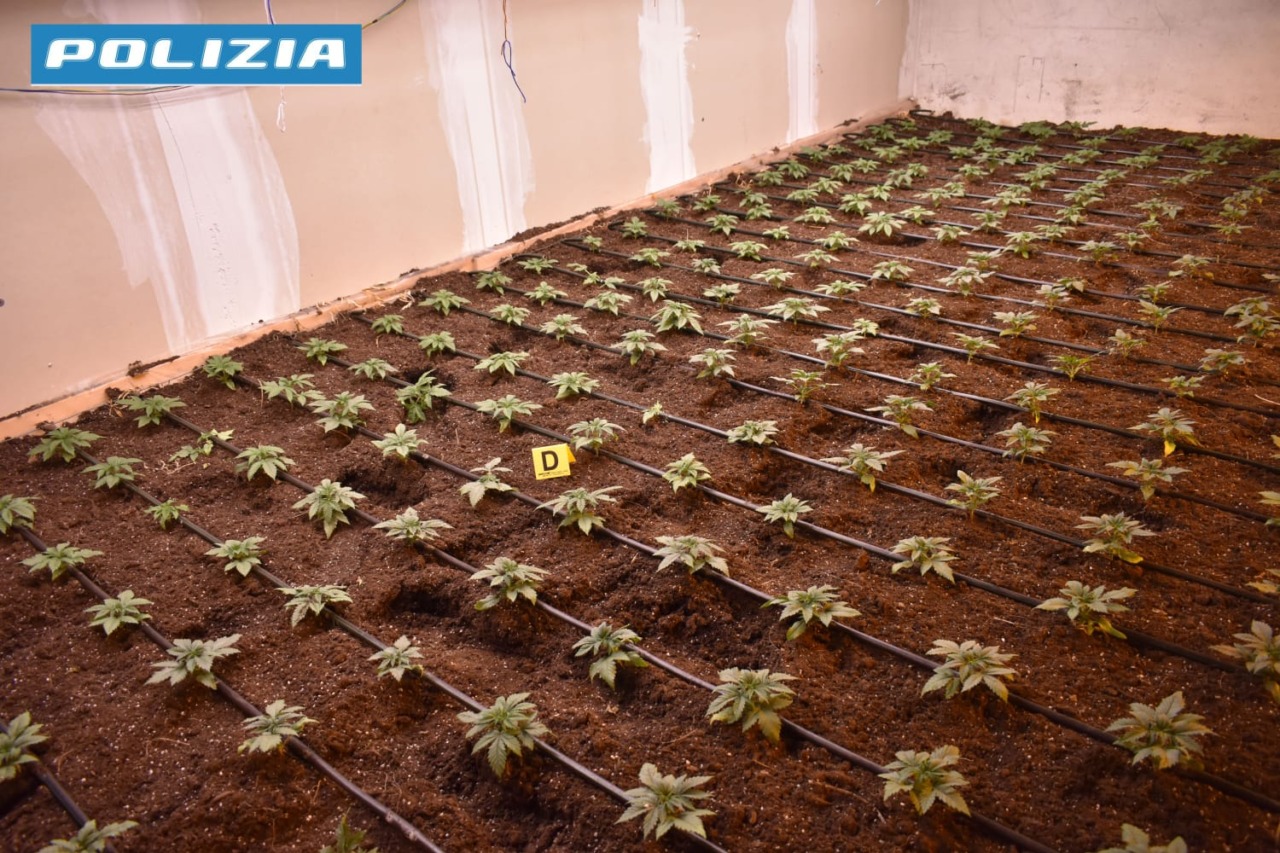 Al piano inferiore del capannone sono state individuate due vere e proprie serre attrezzate con impianti di illuminazione, irrigazione, ventilazione e deumidificazione, utilizzate per la coltivazione di ben 1920 piante di canapa. Nel magazzino sono stati inoltre rinvenuti un termo-saldatore, vasche per l’irrigazione, lampade riscaldanti, fertilizzanti e materiale per il confezionamento dello stupefacente. Durante la perlustrazione del capannone, gli agenti hanno rintracciato un secondo uomo, un 40enne albanese irregolare sul territorio nazionale, che fungeva da custode e si occupava di tutte le fasi della lavorazione delle piante, dalla coltivazione alla produzione. Anche lui è stato arrestato in flagranza per detenzione a fini di spaccio e, in concorso con il connazionale, per produzione di marijuana.