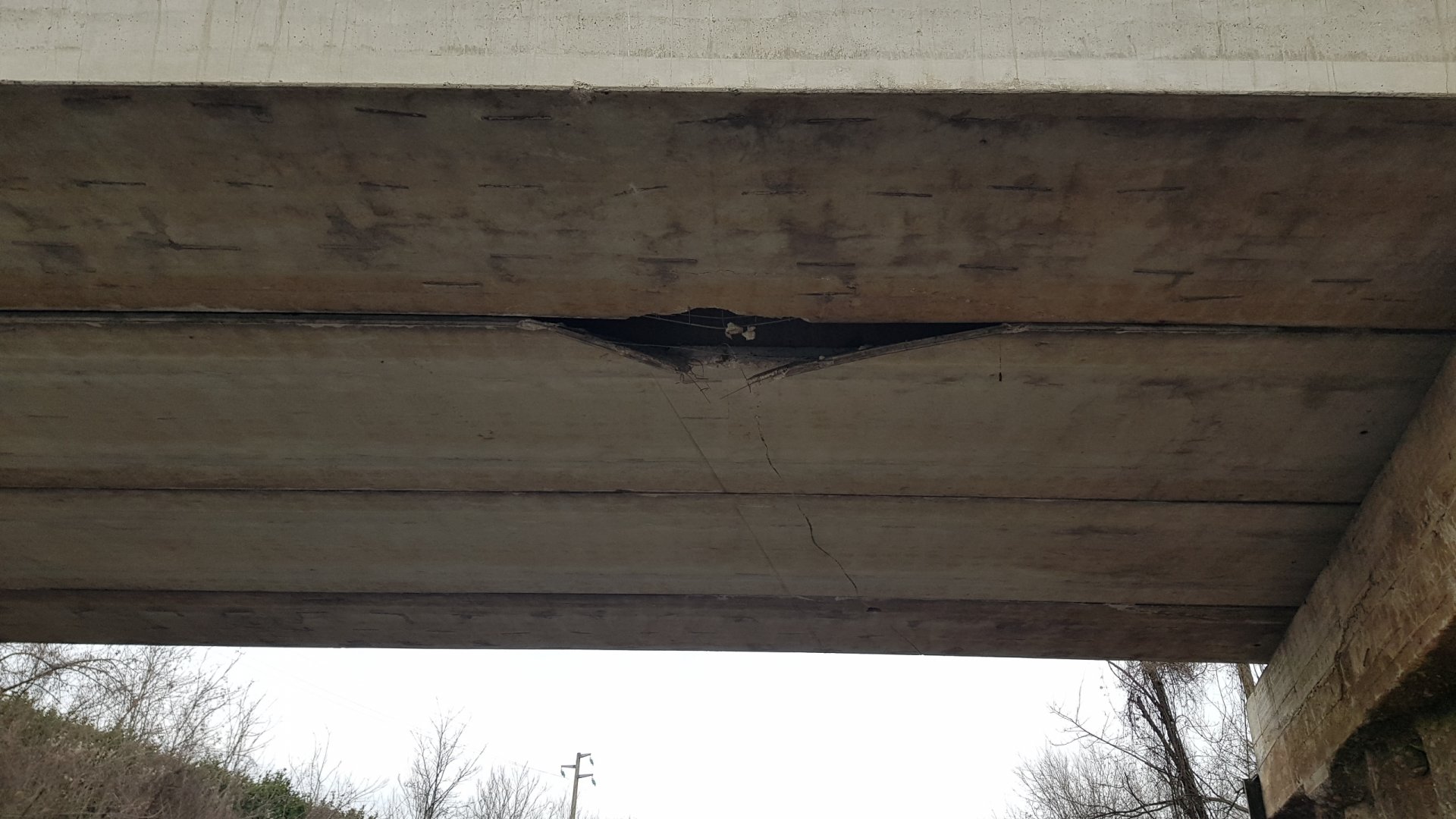 Ad urtare la parte inferiore, provocando nel cemento armato uno squarcio di circa un metro di lunghezza, è stato un braccio meccanico montato sul cassone del grosso mezzo.