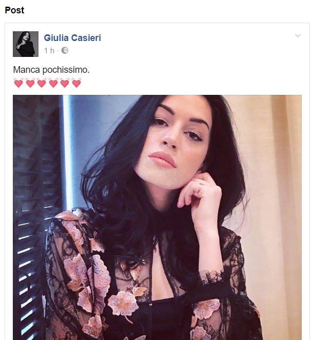 Poco fa la giovane cantante monzese, in un post sulla sua pagina Facebook, ha sottolineato come l’attesa sia ormai finita: “Manca pochissimo” ha scritto condividendo una sua fotografia. a commento del post si contano già decine di auguri per l’esibizione imminente.