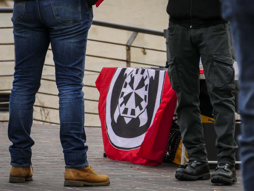 Un gruppetto di antagonisti di Monza e Milano da metà mattina era schierato in piazza San Paolo sotto l’occhio vigile di Polizia di Stato e Carabinieri. I centri sociali non avevano in programma cortei per la città, limitandosi a slogan e attività di volantinaggio per evitare la raccolta firme di “CasaPound” in vista delle elezioni. Inequivocabile un cartello appeso alla segnaletica stradale.