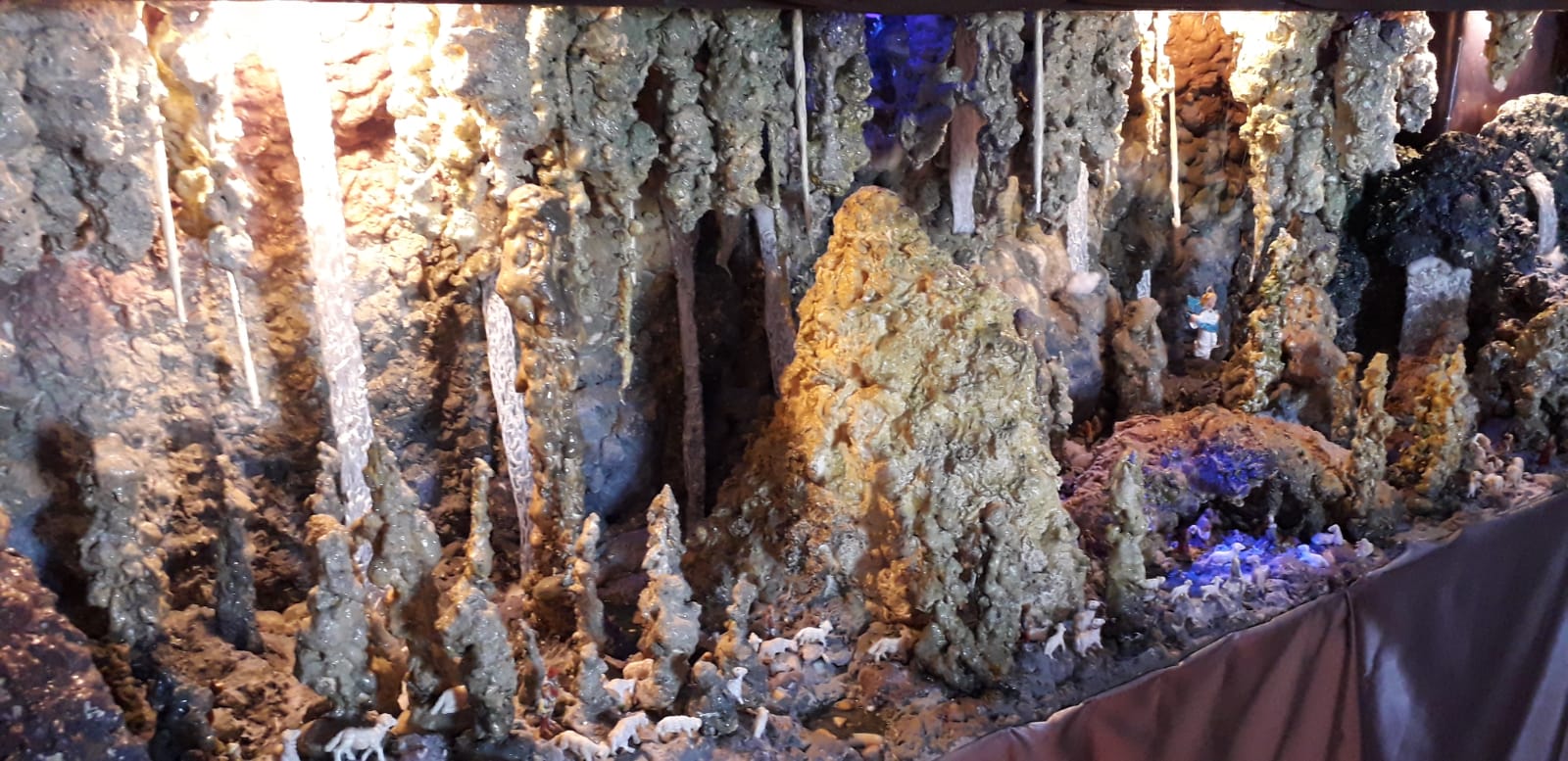 E ogni anno un presepe diverso. Infatti quest’anno la Natività è stata rappresentata tutta all’interno di una maestosa grotta realizzata con stalattiti, stalagmiti, cascate e musica di sottofondo.