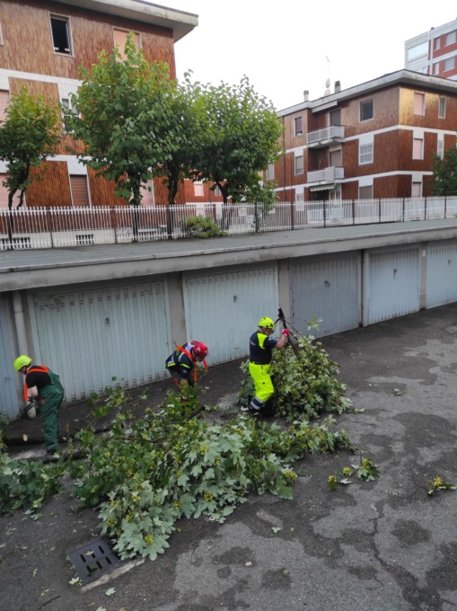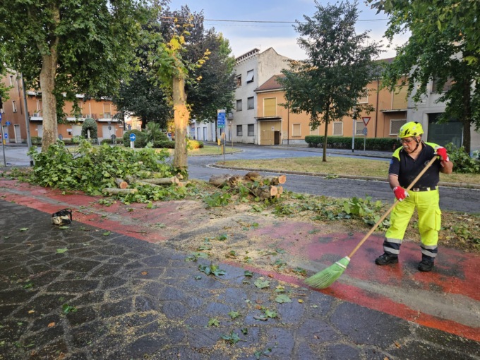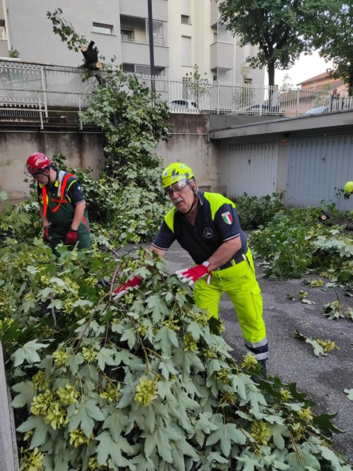 Conclusa la “bomba d’acqua” i volontari della Protezione civile si sono subito messi all’opera per rimuovere gli alberi che ostruivano le strade, lavorando fino alle 22. I tre operatori impegnati, la responsabile del nucleo comunale Valentina Locati, il suo vice Alberto Visioli e Luigi Arcerito si sono concentrati in particolare su due fronti, insieme ai Vigili del Fuoco.