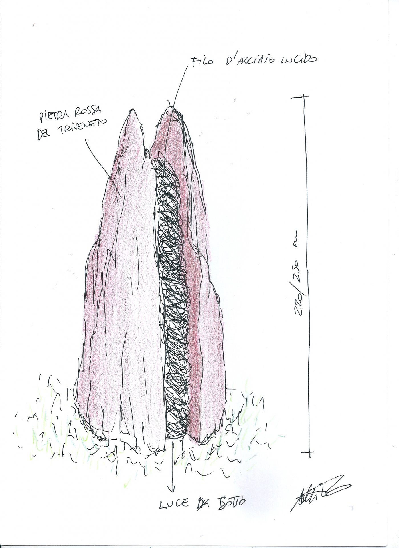«Tra tanti bozzetti, mostrati anche al sindaco, abbiamo scelto quello che rappresenta la montagna, e quindi il Carso, all’interno del quale sarà posizionato il filo spinato a rappresentare il sacrificio dei nostri soldati e l’Italia divisa», ha continuato.