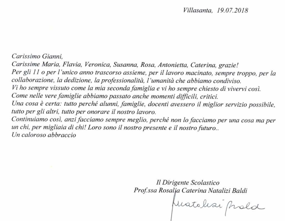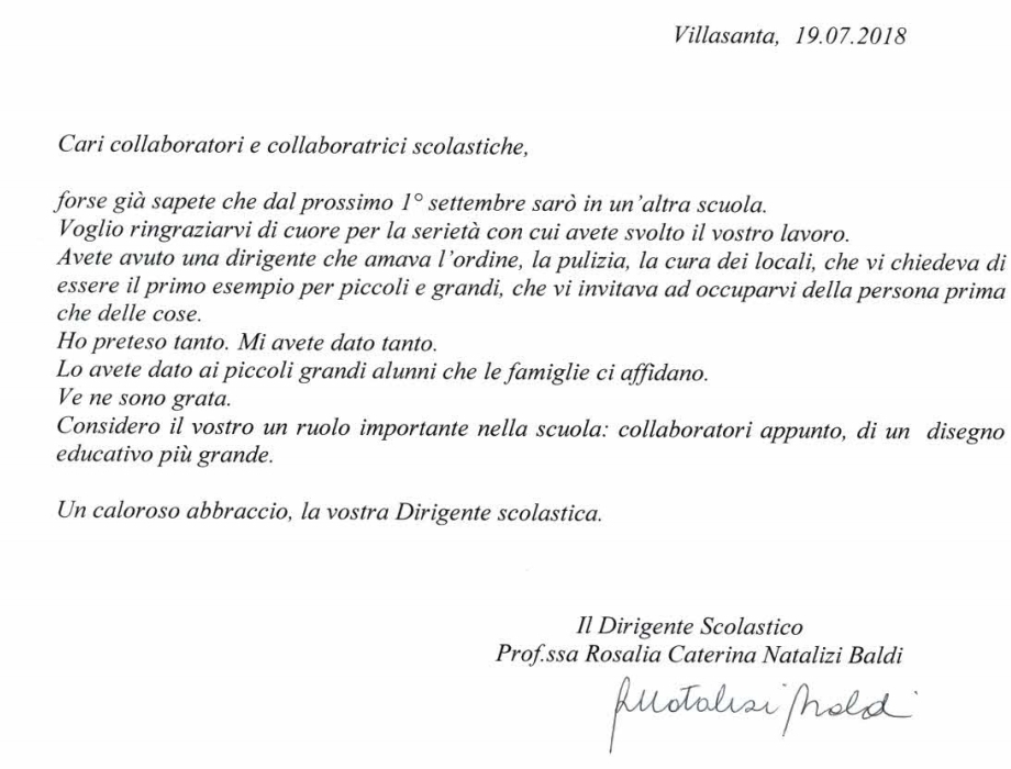 Una manciata di minuti fa la dirigente ha pubblicato sul sito dell’istituto comprensivo villasantese quattro lettere di saluto indirizzate a genitori, docenti, collaboratori e al personale della segreteria.