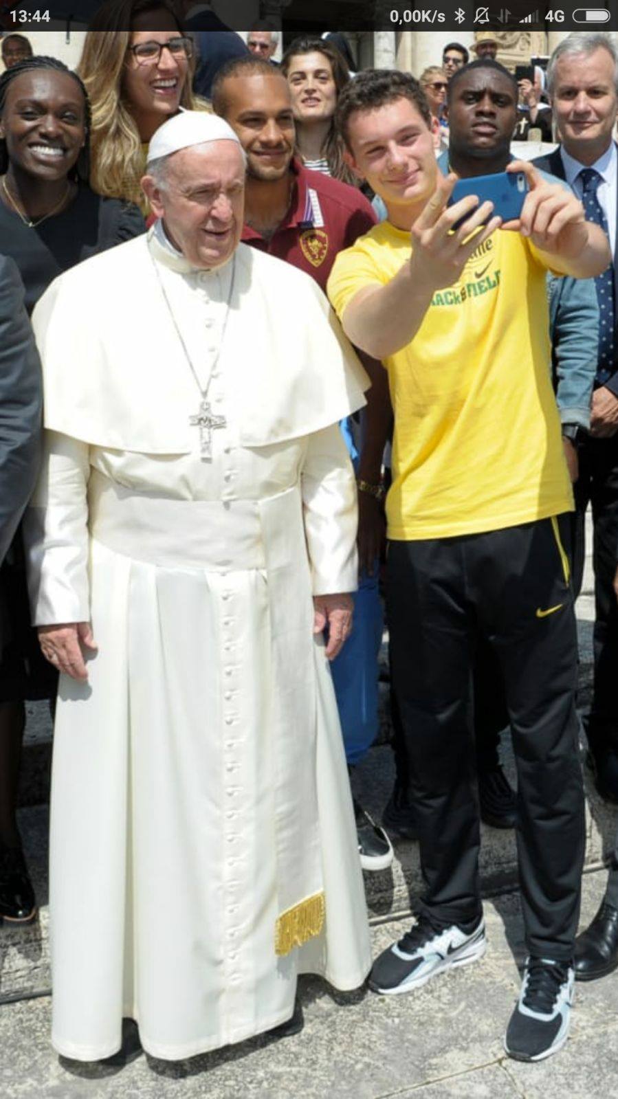 Un selfie con Papa Francesco prima di scendere in pista per il Golden Gala in programma domani, giovedì allo Stadio Olimpico di Roma.